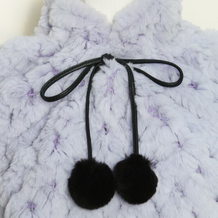 母の日 / ギフト / プレゼント / セール / 敬老の日 / レッキスラビットを使用したケープ。2トーンカラーが美しくキュート。V字型で着膨れせずスタイル良く見えます!リボンを絞って調節。クシュッと絞って着てもキュート。袖がないので着脱衣が簡単♪首から肩まで覆ってくれるので暖かさも◎ふわふわのレッキスラビットが包み込んでくれます。