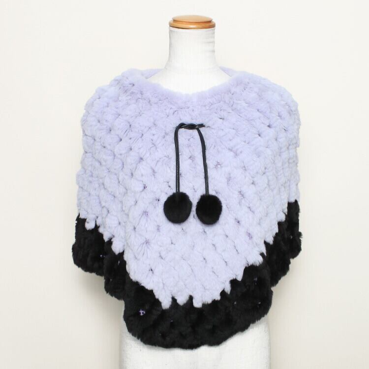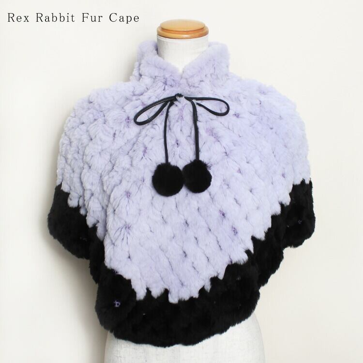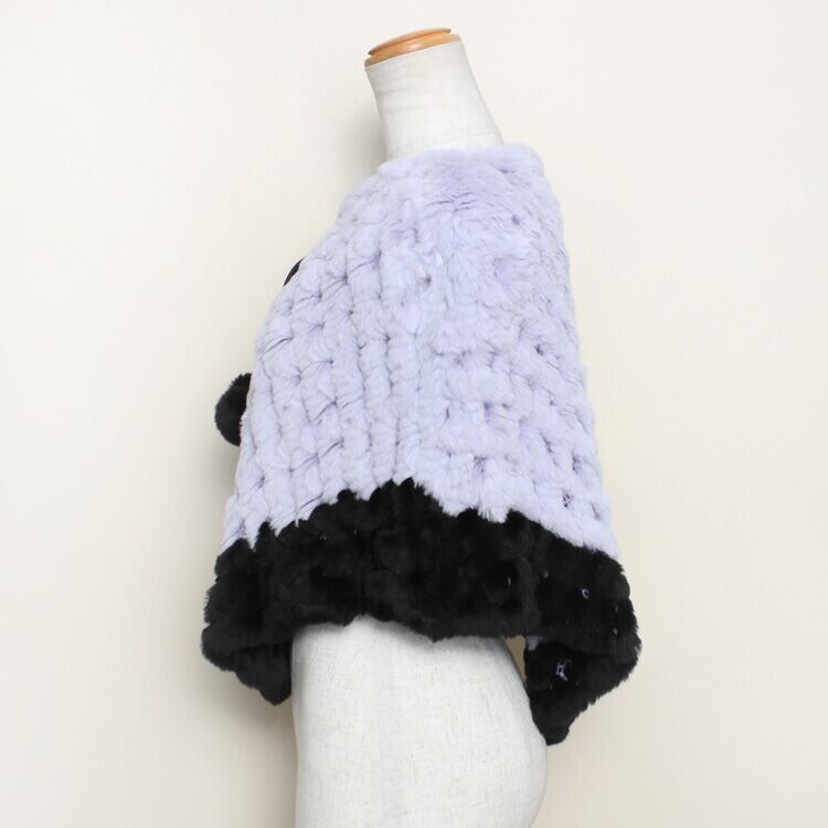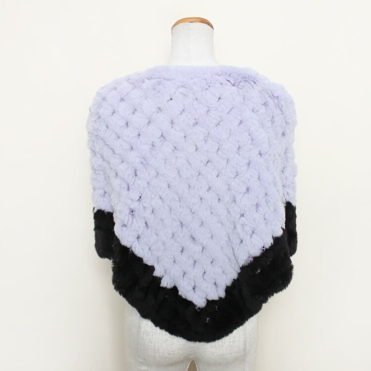 レッキス ラビット 編み込み ファー ケープ ポンチョ 2トーンカラー ブルー パープル 送料無料 レディース ギフト プレゼント RX7545