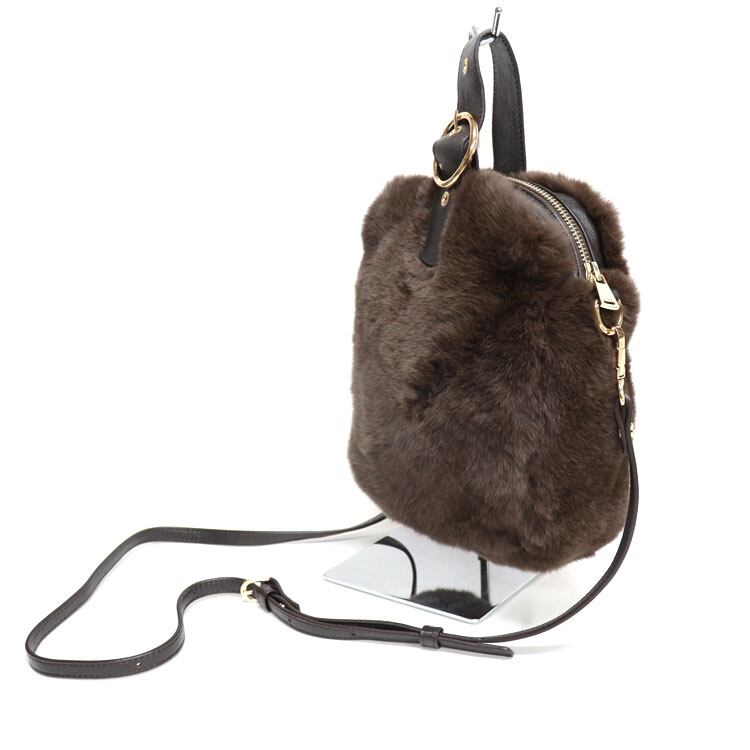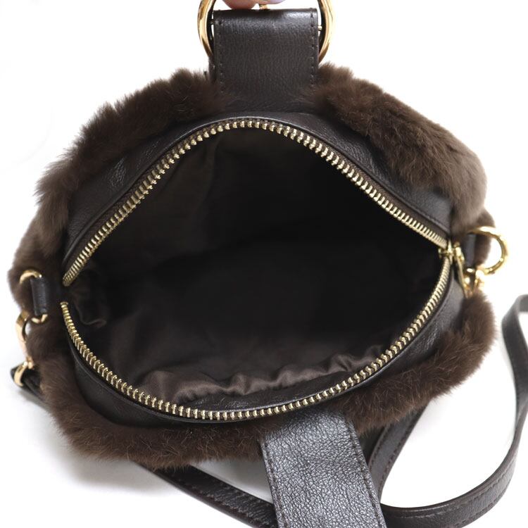 訳あり レッキスラビット ファー 2way バッグ 手提げバッグ ポシェット ブラウン 送料無料 レディース ギフト プレゼント