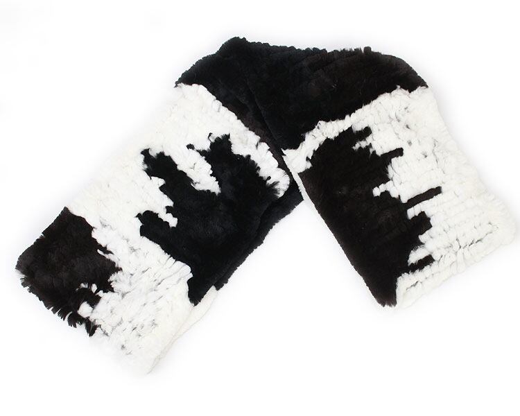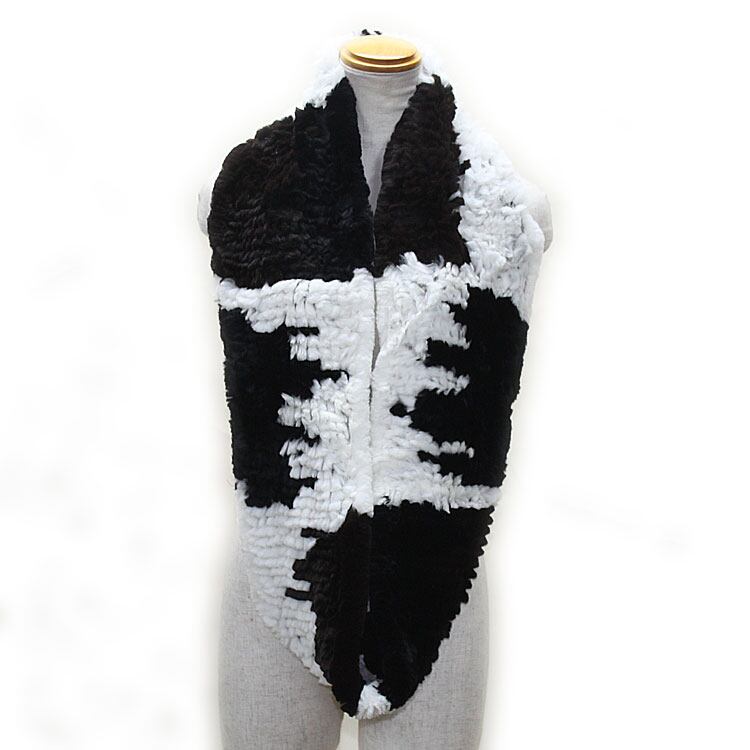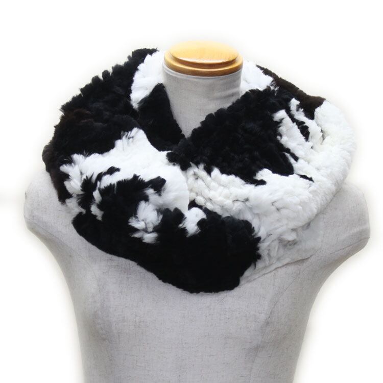 レッキスラビット 編み込み ファー スヌード ネックウォーマー 輪っか状 牛柄 ブラック ホワイト レディース ギフト プレゼント RX9731