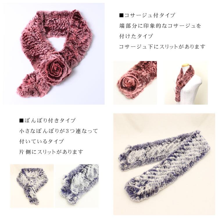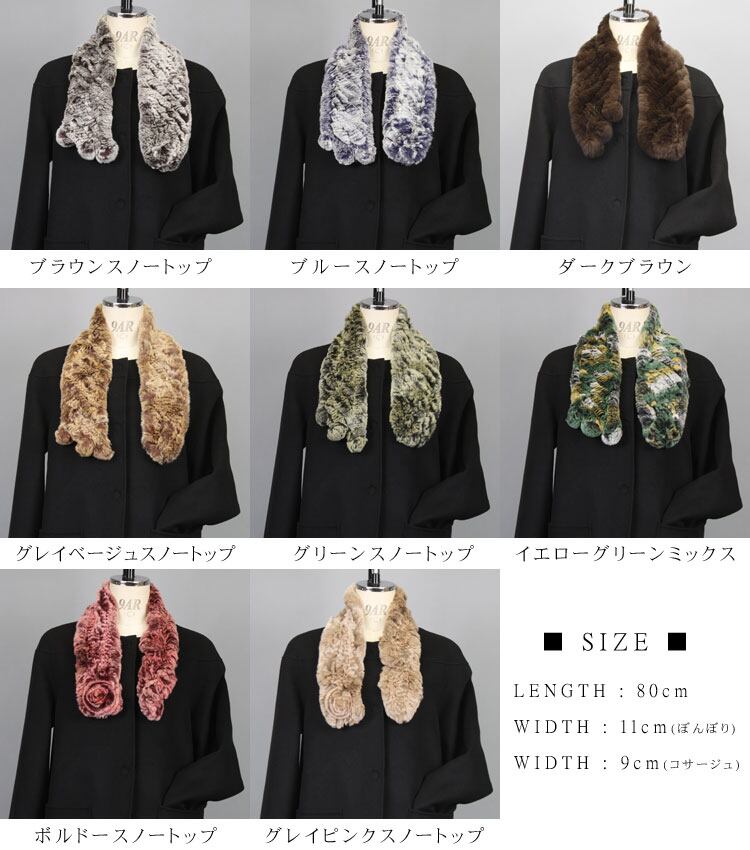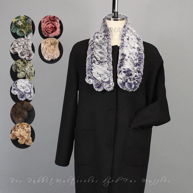 レッキスラビット マルチカラー ファー マフラー 多色染め ぼんぼり・コサージュ レディース ギフト プレゼント RXB131