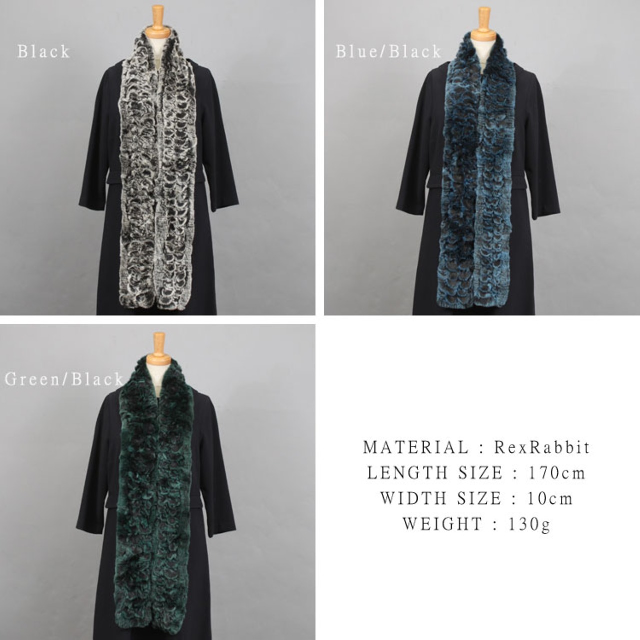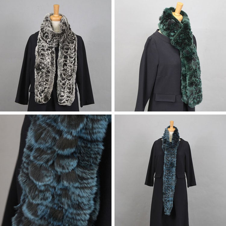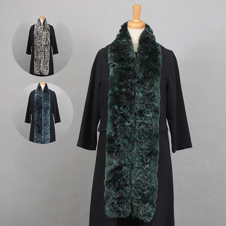 抜け毛が少なく、滑らかでふわふわのレッキスラビットを使用したロングタイプのファーマフラーです。首に掛けるだけでも、心地よいレッキスラビットファーの温もりを思う存分堪能できます。