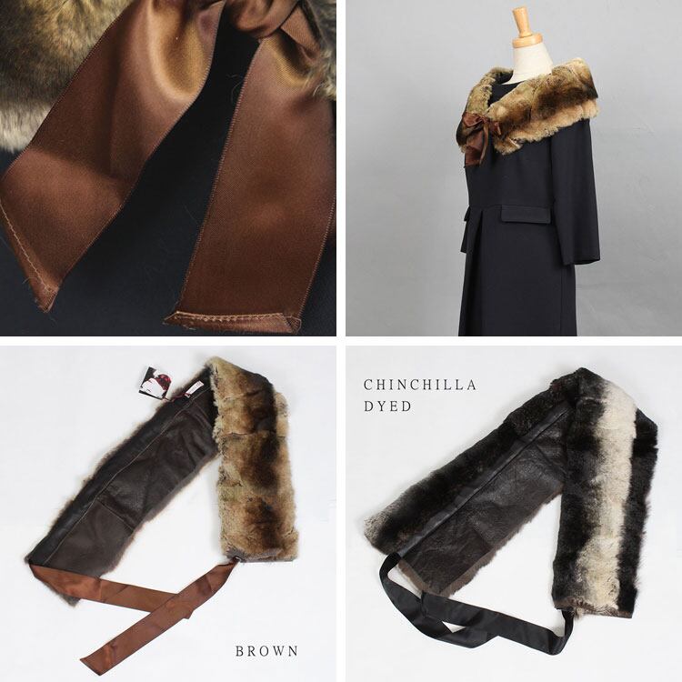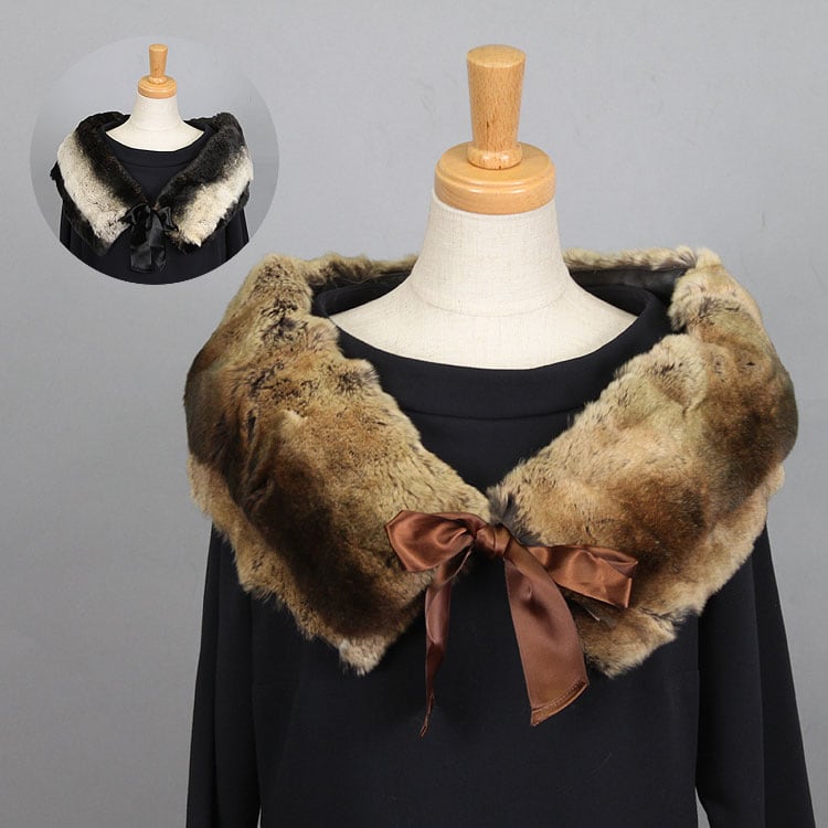 母の日 / ギフト / プレゼント / セール / 敬老の日 / 抜け毛が少なく、心地よい肌触りのレッキスラビットを使用した、リボン留めのファーティペットです。濃淡のあるカラーが、毛質により非常に滑らかで美しい見え方になっているのもポイント。
