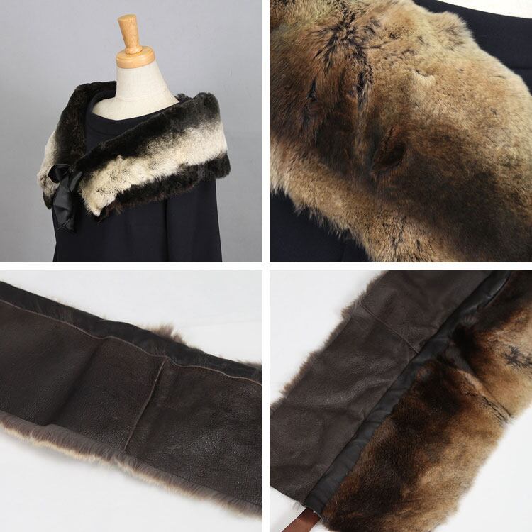 RXEC91A フランスブランド レッキスラビット ファー ティペット リボン付 マフラー ケープ 送料無料 レディース ギフト プレゼント