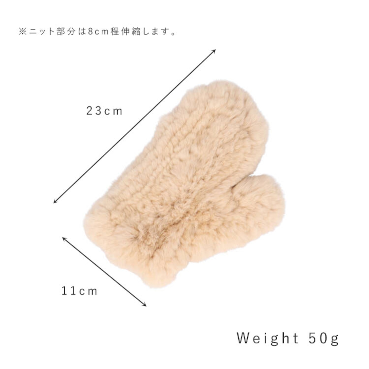 【サイズ(最大部を計測)】長さ約23cm 手首部分直径約11cm ※それぞれ約8cmほど伸縮します 【重さ】約110g(約55g×2) 【留め具】無し 【裏地】無し 【素材】レッキスラビット 【生産国】中国