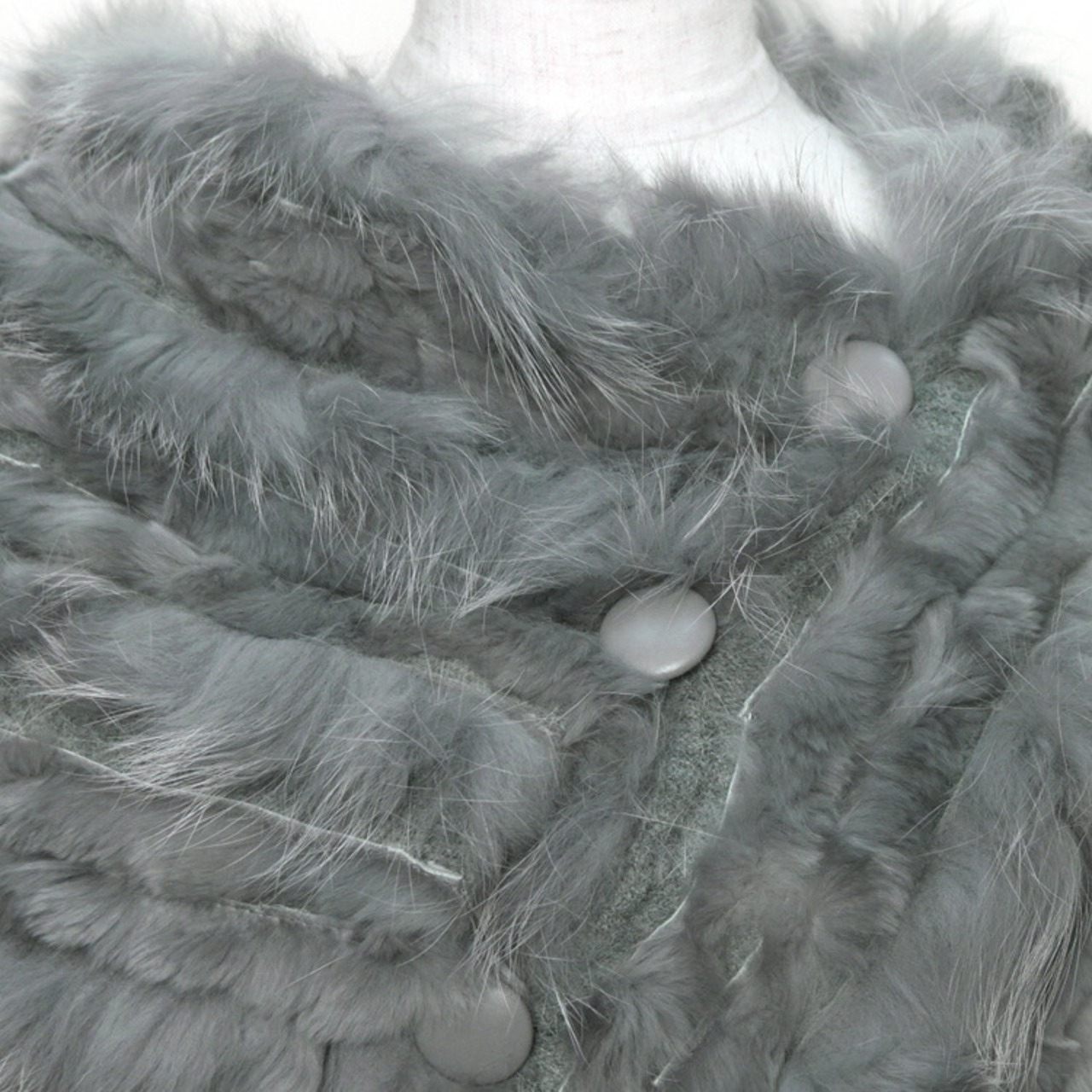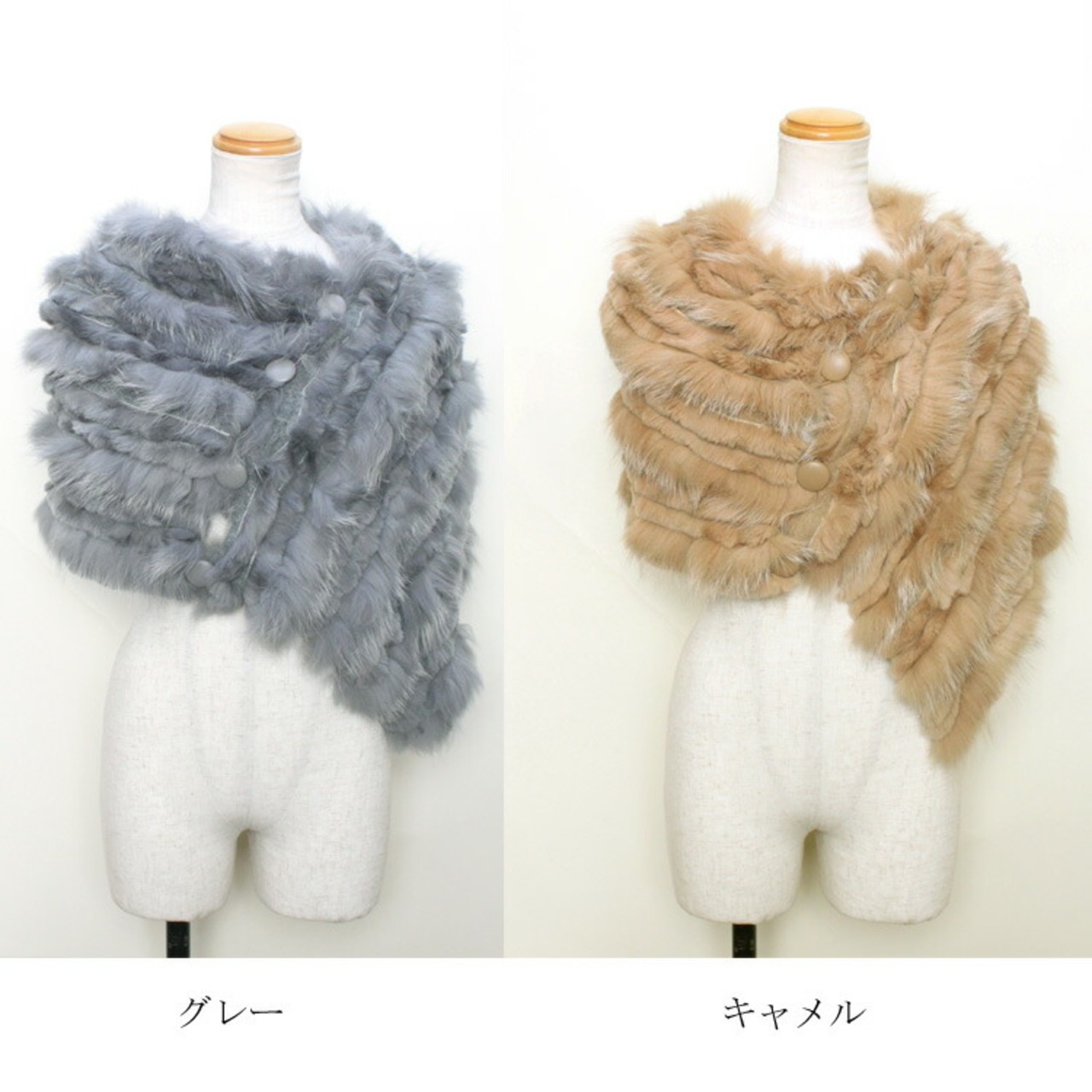 抜け毛が少なく、滑らかなレッキスラビットと、長く毛色の違いが美しいフォックスを組み合わせたファーケープです。薄手で軽いのにとても暖か。肩の出るドレスでも優しいぬくもりで包み込んでくれます。アクリルニットをベースにボーダー状に編み込まれており、ボタンを留めてアシンメトリー着こなしたら個性も抜群。首に巻き付けてマフラーとしてもお使いいただけます。