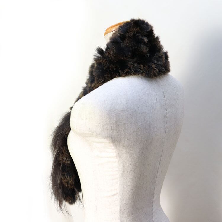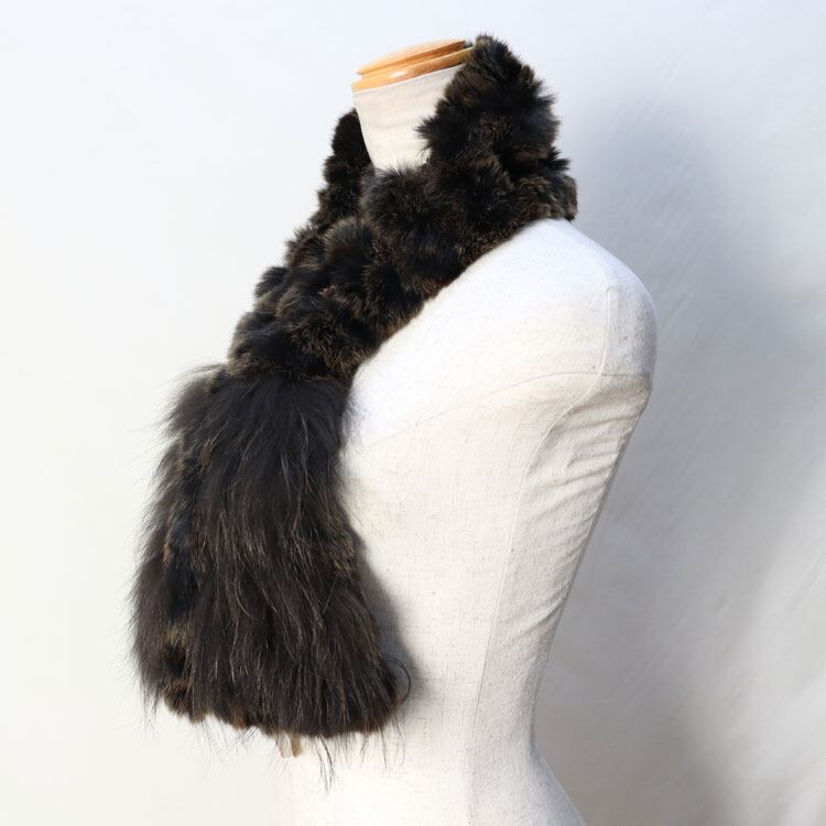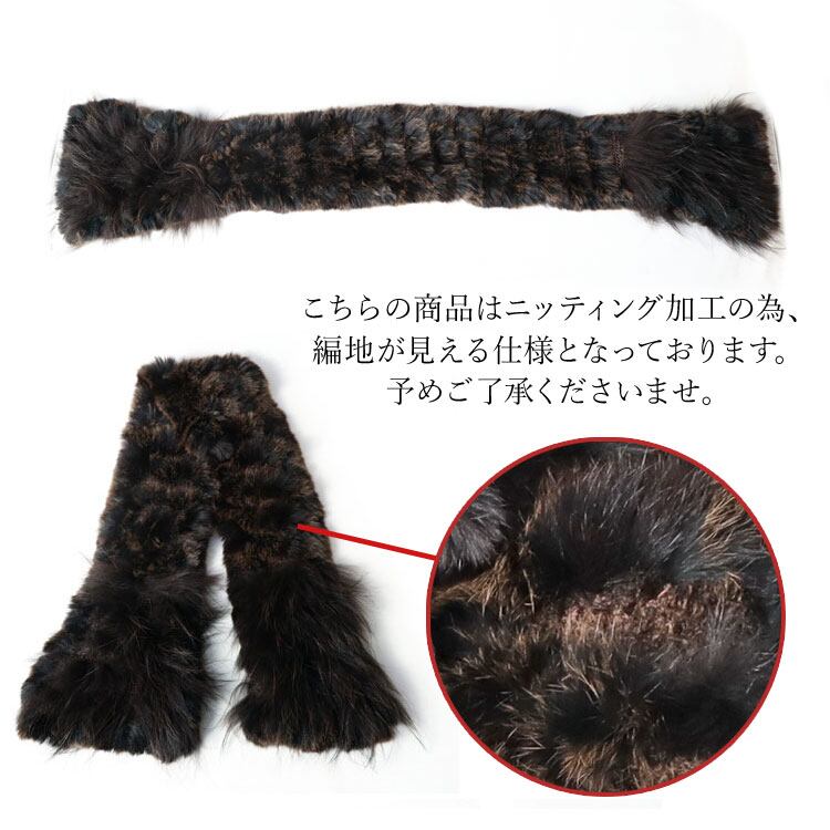 マフラー レディース レッキスラビット ラクーン ファー リバーシブル リアルファー ニッティング 編み込み ブラウン 秋 冬 送料無料 ギフト プレゼント RXK021