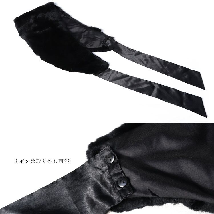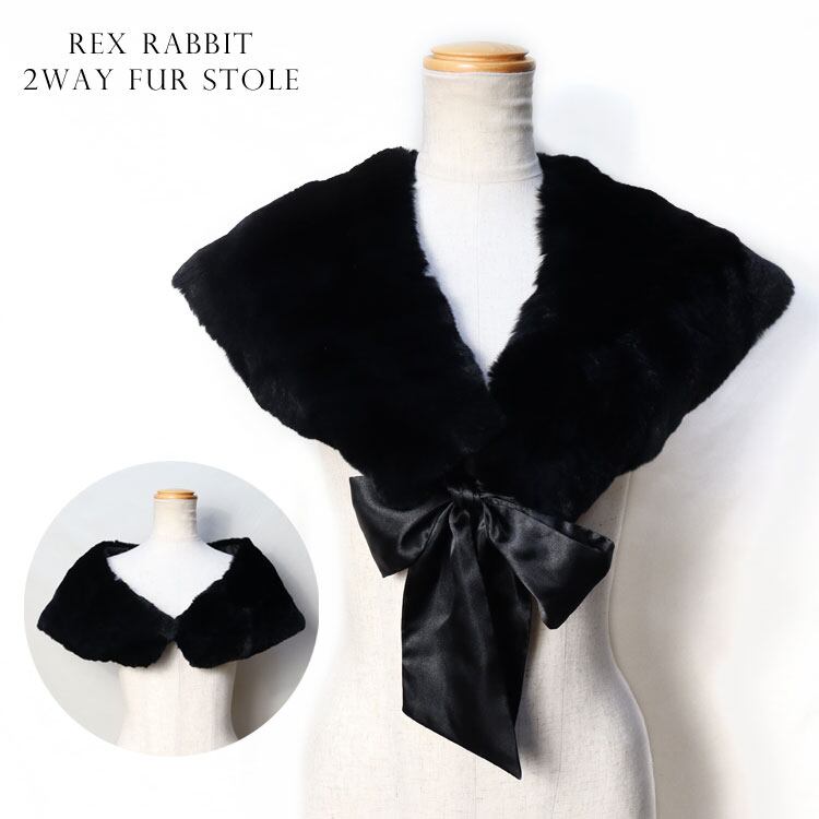 RXK111ABK1037 ファー ストール レッキスラビット マフラー リボン付 2way ラビットファー ブラック 送料無料 レディース ギフト プレゼント