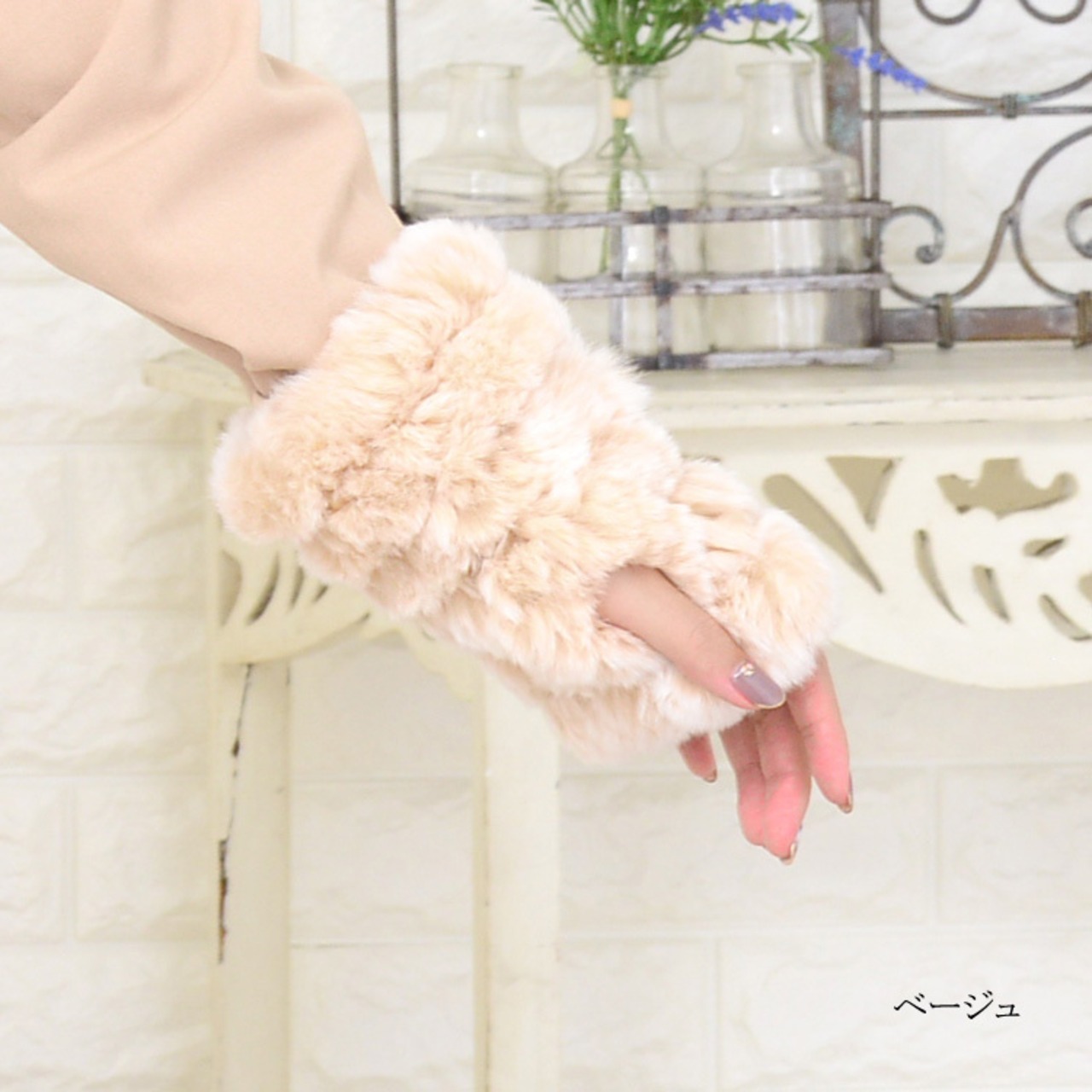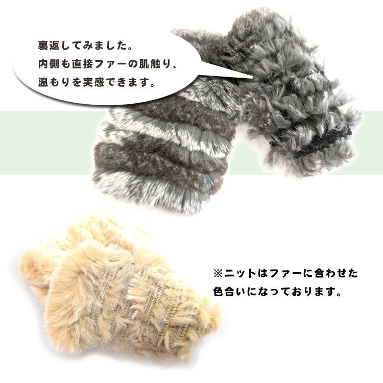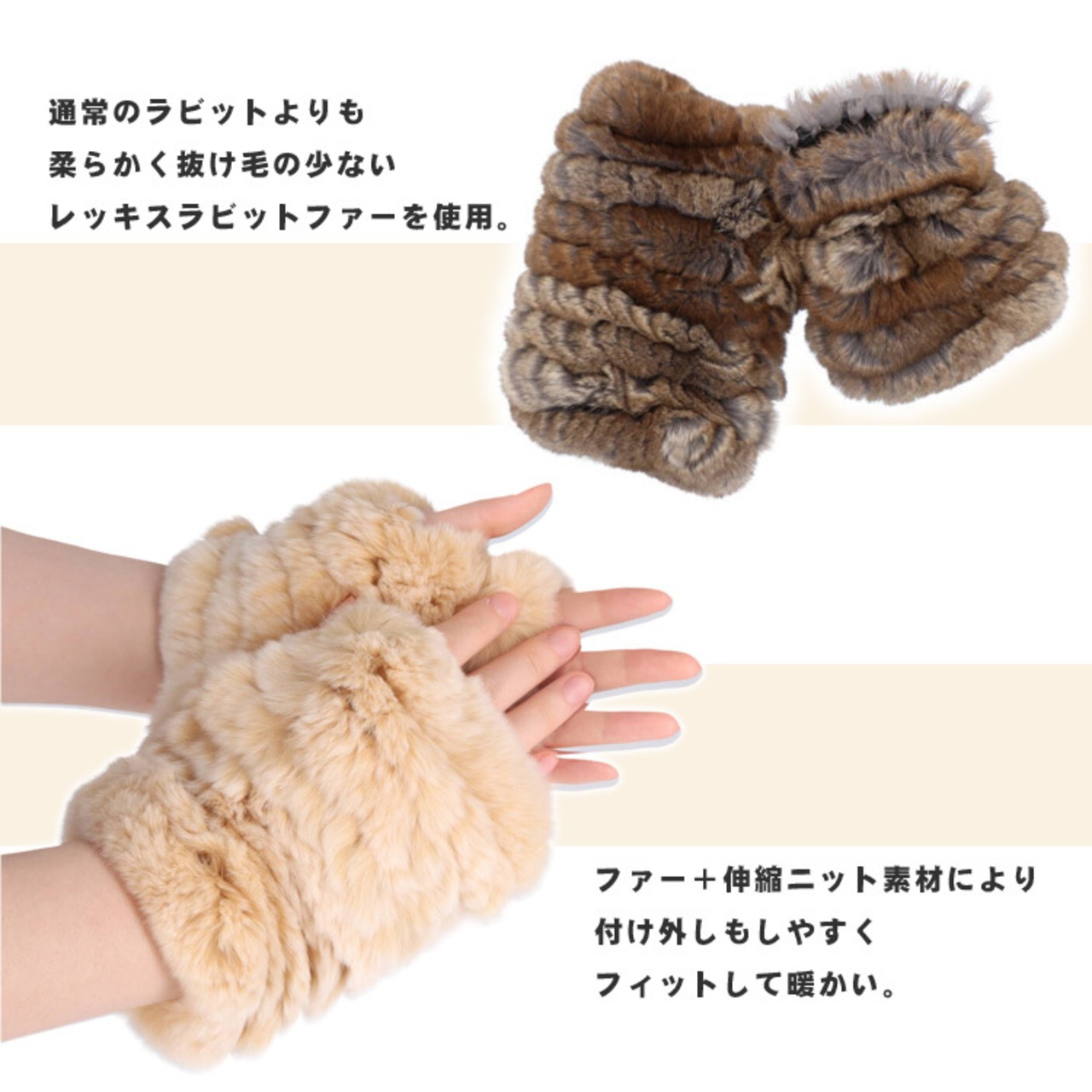 レッキスラビット ファー ニット ハンドウォーマー グローブ 指ぬき手袋 ミトン アームウォーマー レディース メンズ ギフト プレゼント RXK682