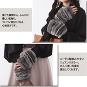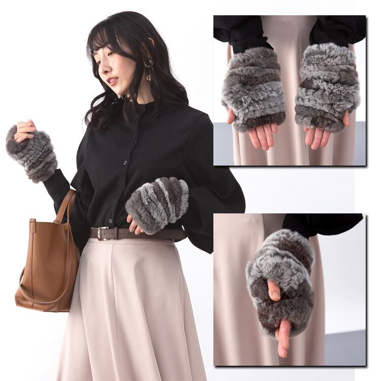 両面ファーの暖かいハンドウォーマー。スマホも扱えるデザインで1つあると非常に便利。使用している「レッキスラビット」は、ラビットファーの中でも高級種とされており、通常混ざっている少し硬い毛が無く、ふわふわの柔らかい毛だけでできています。<br>