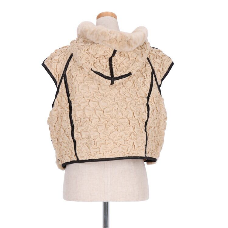 【サイズ(最大部を計測)】肩幅約52cm 着丈約42cm 身幅約100cm アームホール約48cm 【重さ】約500g 【ポケット】外側×2 【留め具】ファスナー 【裏地】有り 【素材】レッキスラビット、アクリル生地