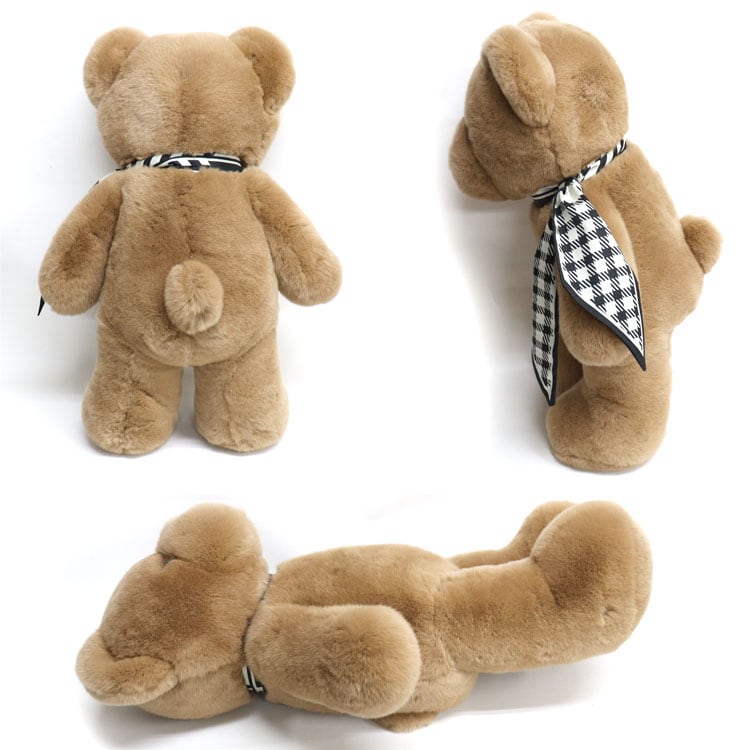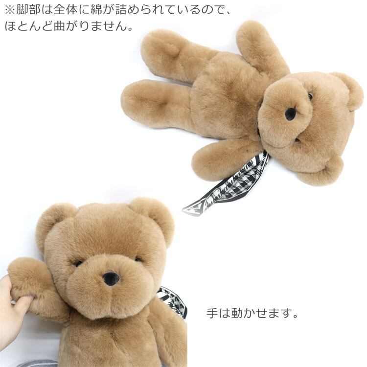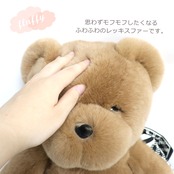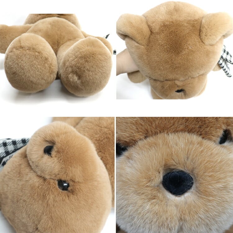 ふわふわのレッキスラビットファーを使用した、可愛いくまさんのぬいぐるみです。ふわふわで柔らかなぬいぐるみは、触ったり抱きしめたりする事で不安の解消やリラックス効果があるとされ、癒しの効果は抜群。ストレスの多い現代人にもぬいぐるみはオススメです。玄関や寝室のインテリアとして飾ると可愛くギフトやプレゼントにもオススメです。ラビット最高級種のレッキスラビットは密度の濃いふわふわの綿毛が特徴です。