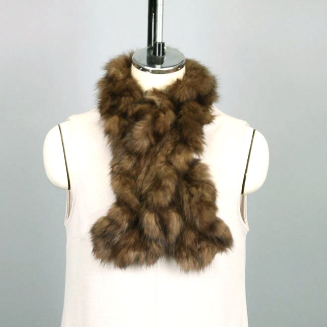 品のあるブラウンナチュラルカラーが美しい、高級素材セーブルのファーマフラー。フリルのように編み込んだデザインでボリューム感があり、華やかさも演出します。