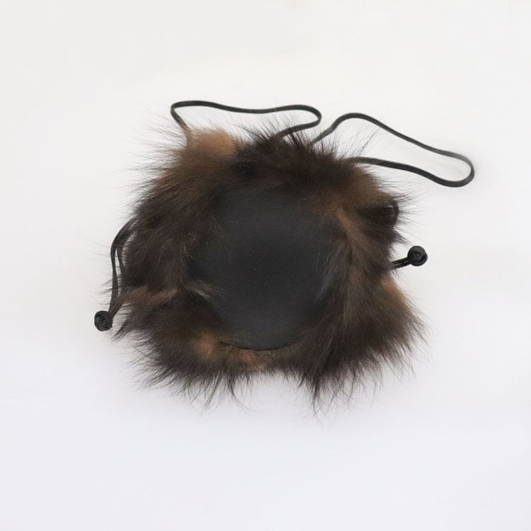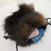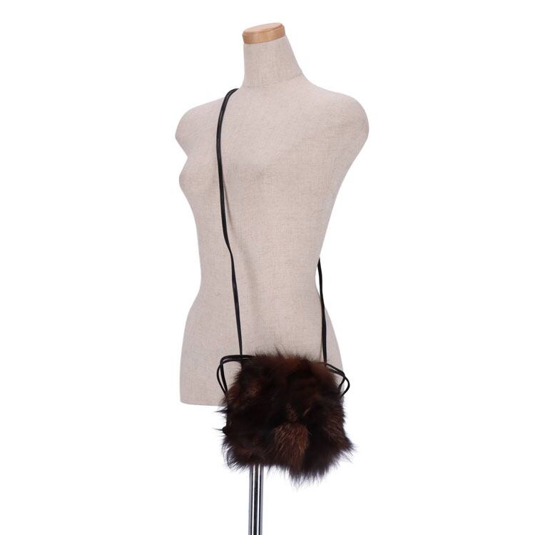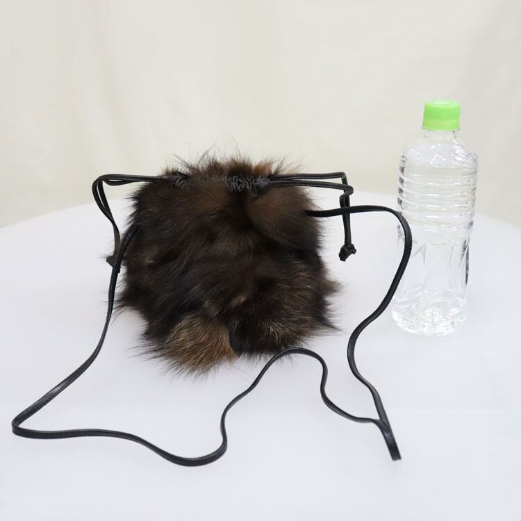 【サイズ(最大部を計測)】縦幅約13cm 横幅約12cm 底面径約12cm ショルダーベルト長約58cm 【重さ】約160g 【内側収納】無し 【外側収納】無し 【留め具】巾着ひも 【裏地】有り 【素材】シルバーフォックス、カウレザー