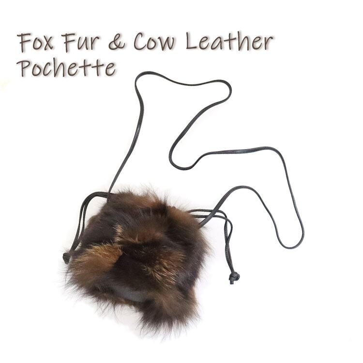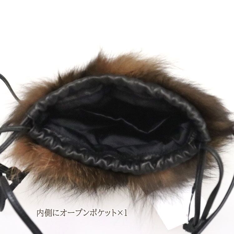 ファーポシェット シルバーフォックス カウレザー 巾着 リアルファー ミニバッグ ブラウン 斜め掛け レディース ギフト プレゼント SC355N