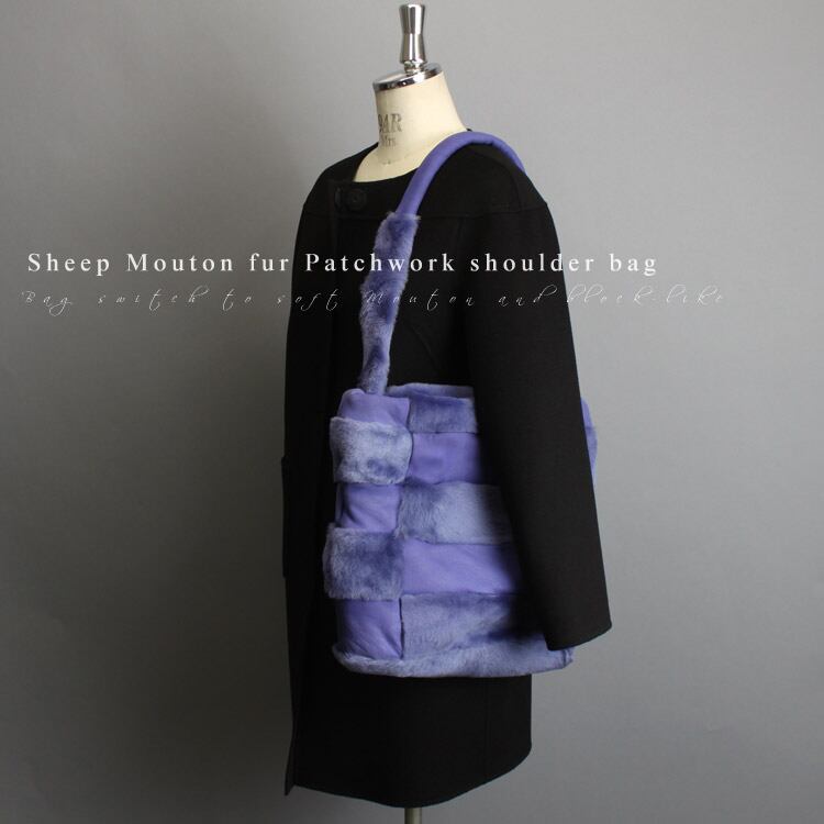 母の日 / ギフト / イタリアから届いた、柔らかなシープムートンの切り替えショルダーバッグ。レザー面とファー面を交互に切り替えてあります。持ち手まで、シープファー、レザーを使用しており、ムートンファーの魅力を最大限楽しめます。