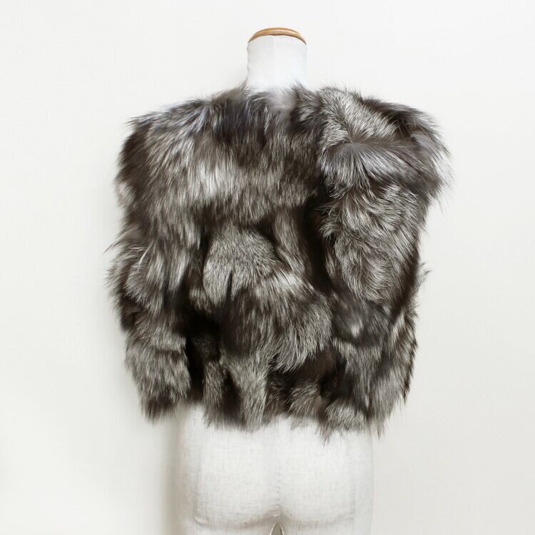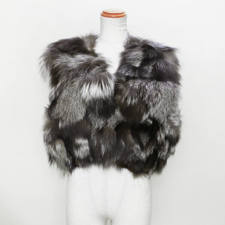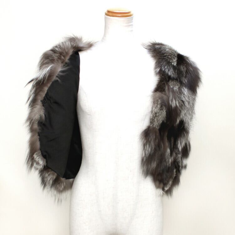 【サイズ(最大部を計測)】着丈約40cm 身幅約102cm 肩幅約41cm アームホール約48cm 【重さ】約340g 【留め具】ホック×1 【素材】シルバーフォックス 【内側ポケット】無し 【外側ポケット】無し 【裏地】有り