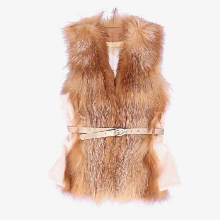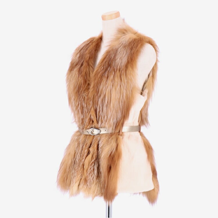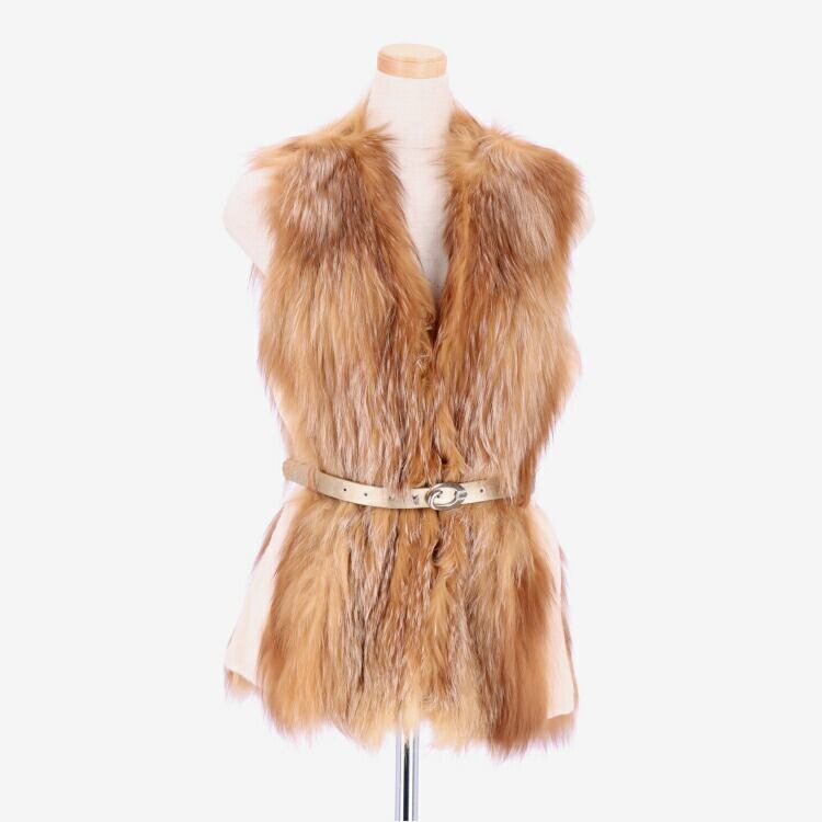 SI988CBLB1016 【訳あり】シルバーフォックス ファーベスト ライトブラウン ラムレザーベルト付 送料無料 レディース ギフト プレゼント