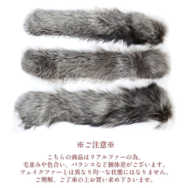 【サイズ(最大部を計測)】毛を含む:長さ約72cm 幅約14cm / 裏地のみ:長さ約65cm 幅約7cm 【重さ】約100g 【留め具】クリップ×1・ホック×1 【素材】表地:SAGAシルバーフォックス、裏地:アセテート50%、キュプラ50% 【裏地】有り 【生産国】日本