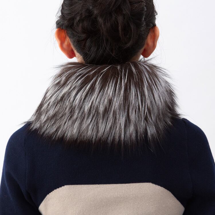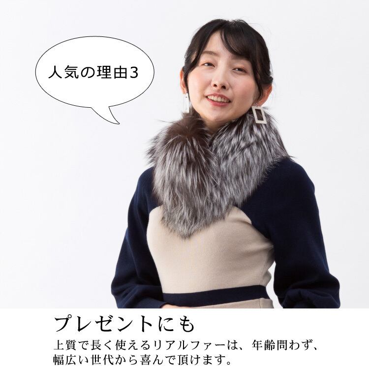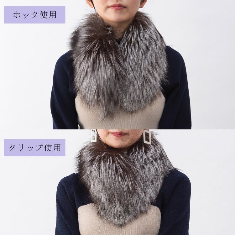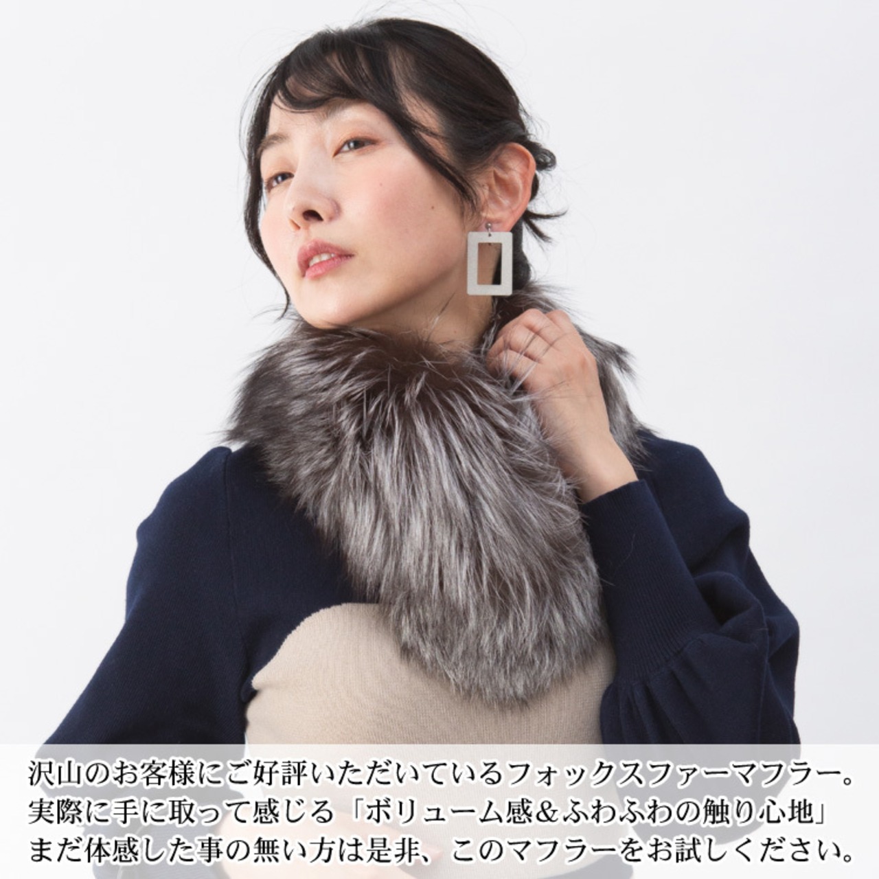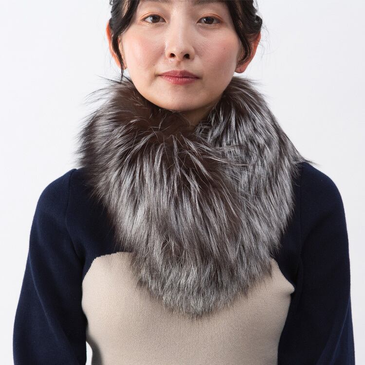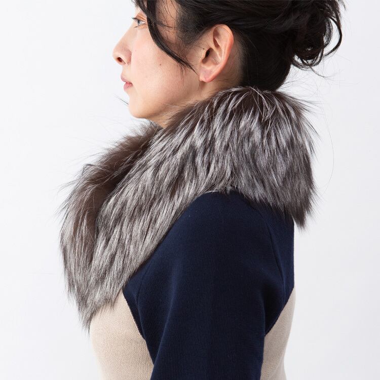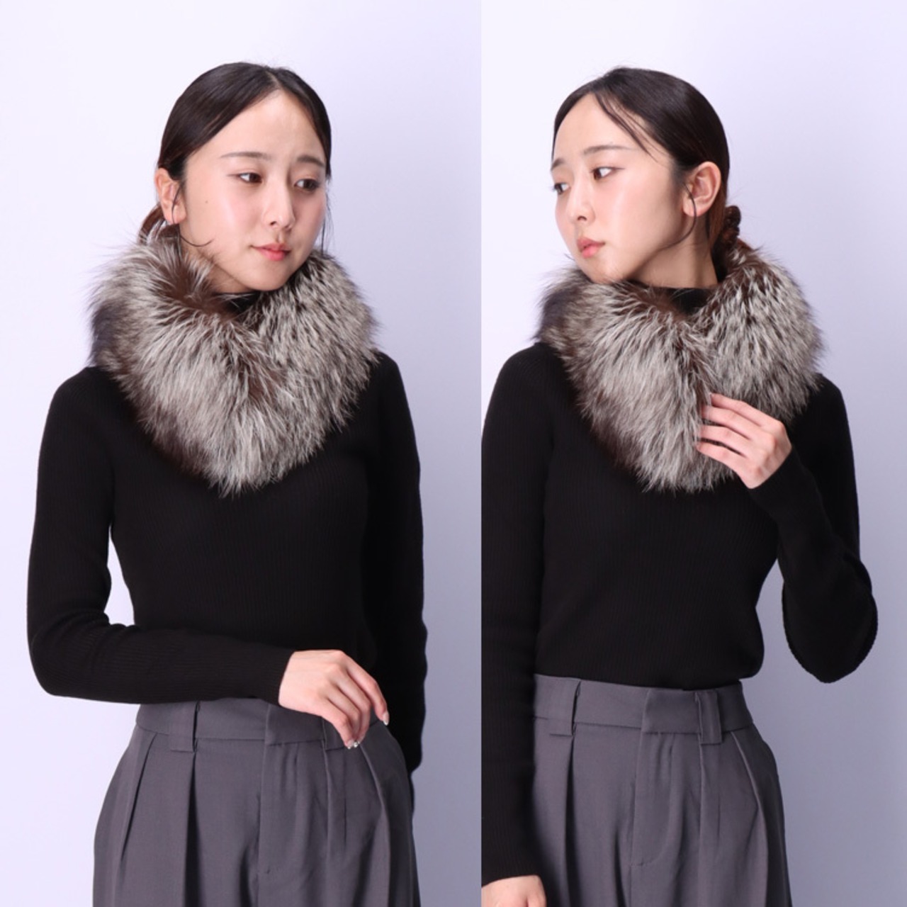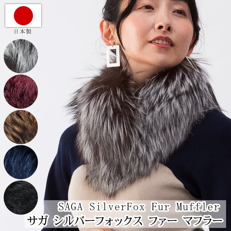 SAGAブランドのシルバーフォックスを贅沢に使用したファーマフラーです。フォーマルに、ドレスや和装はもちろん、カジュアルにニットやジャケットの上から合わせてもゴージャスです。