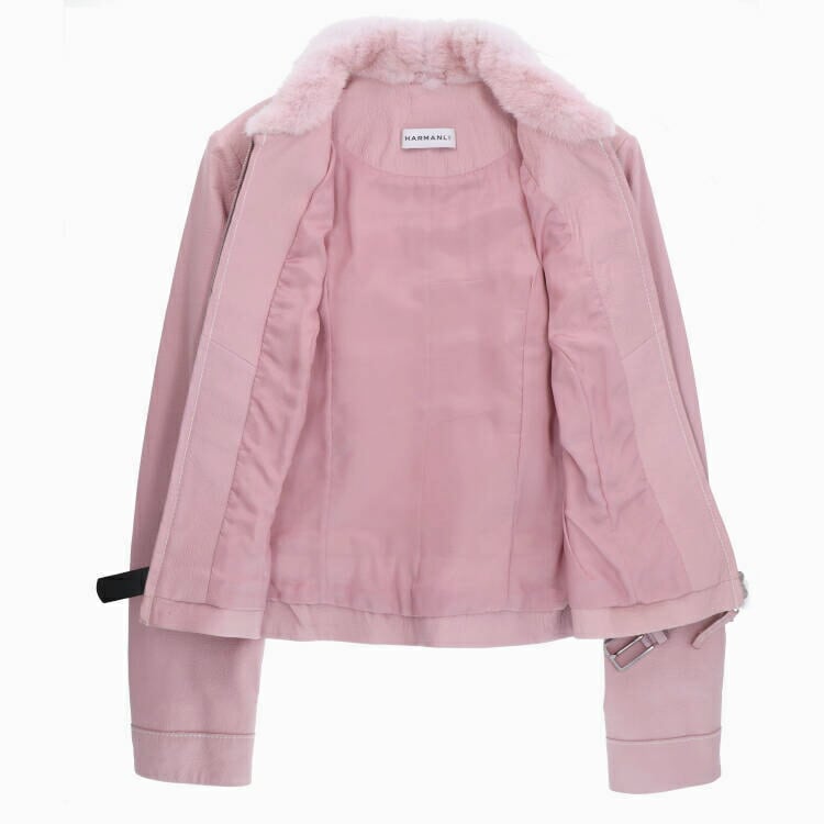 SL1105APK1014 ミンク ファー トリミング シープ レザー ジャケット ピンク 送料無料 レディース ギフト プレゼント