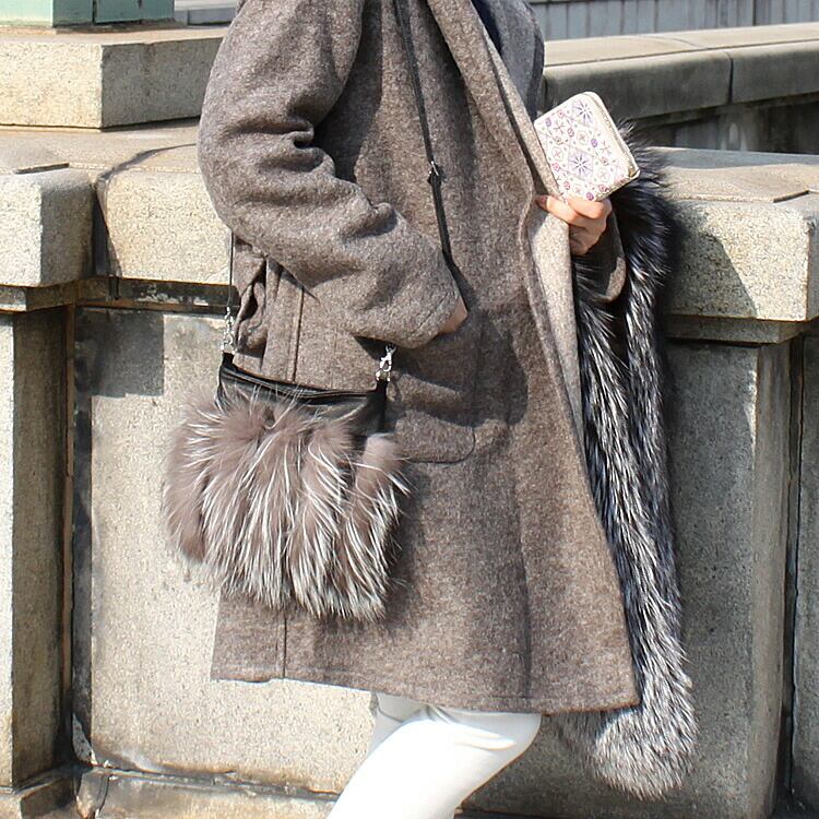 シルバーフォックス ファー ショルダーバッグ ポシェット 本革 牛革 ギフト プレゼント FOX 斜めがけバッグ レディース SLPC