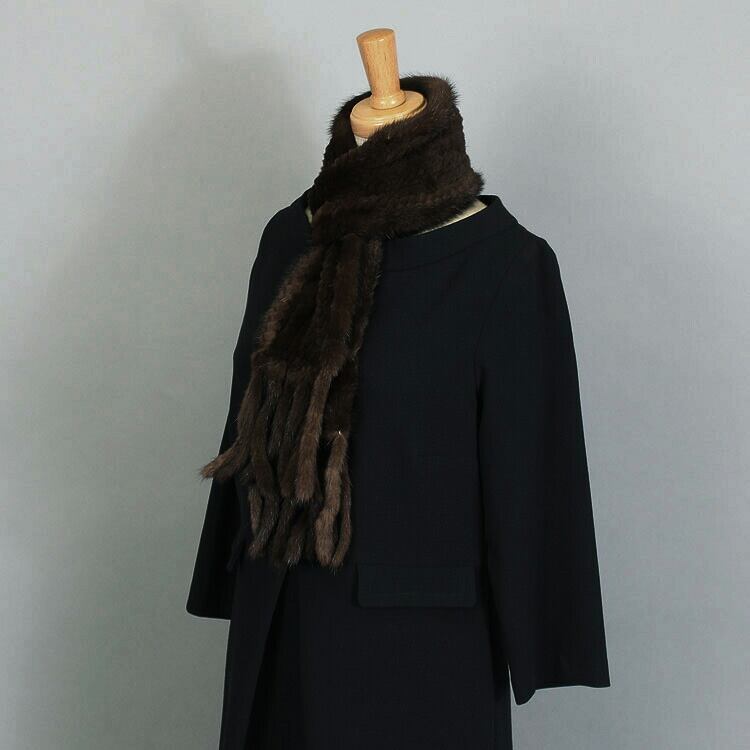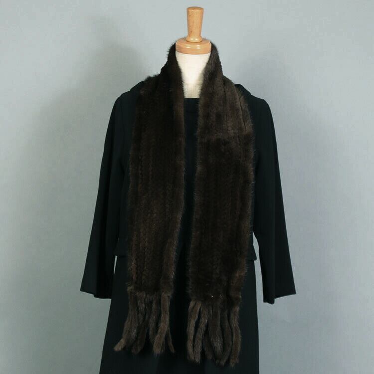 シェアード ミンク ファー 編み込み マフラー フリンジ付 ダークブラウン 送料無料 レディース メンズ ギフト プレゼント SM0881