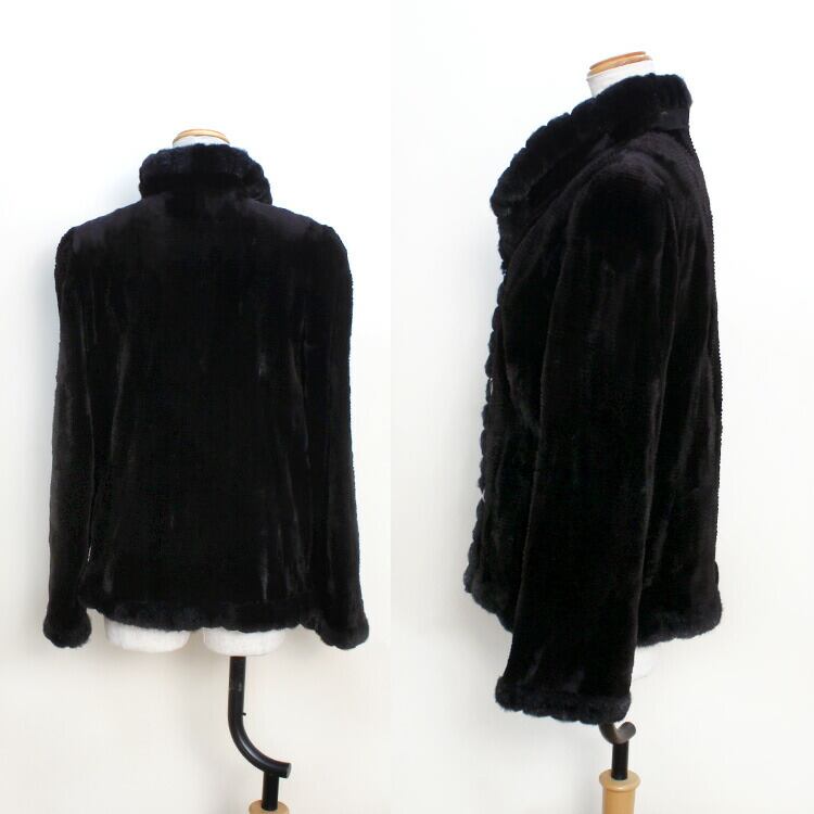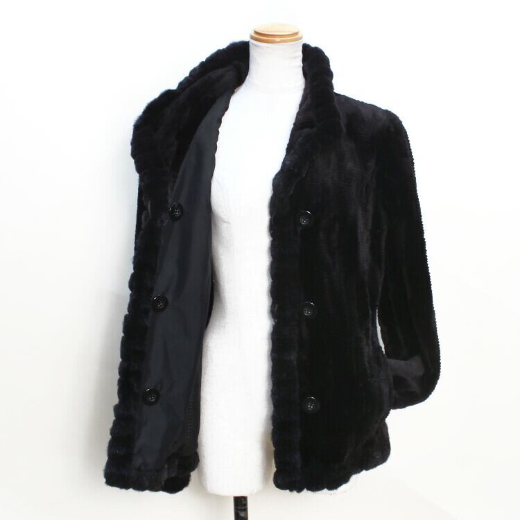 【サイズ(最大部を計測)】着丈約61cm 身幅約92cm 肩幅約37cm 袖丈約63cm 【重さ】約970g 【留め具】裏表各ボタン×3 【素材】シェアード(刈り毛)ミンク、シルク 【内側ポケット】2つ 【外側ポケット】2つ 【裏地】有り