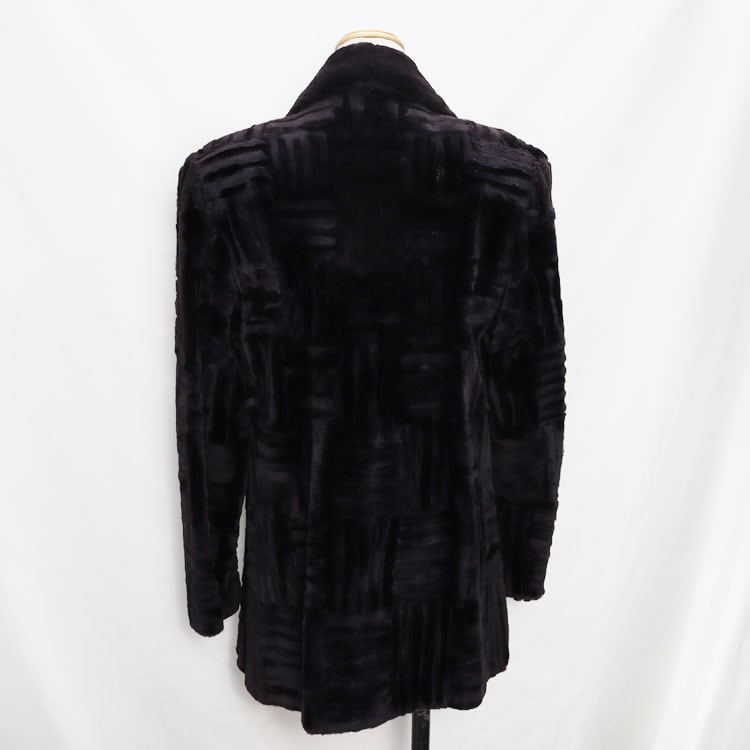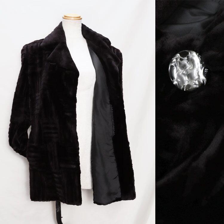 【サイズ(最大部を計測)】着丈約75cm 身幅約96cm 肩幅約40cm 袖丈約58cm 【重さ】約970g 【留め具】ボタン×1 ホック×3 【素材】シェアード(刈り毛)ミンク 【内側ポケット】1つ 【外側ポケット】2つ 【裏地】有り