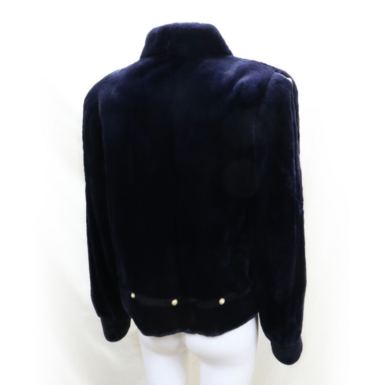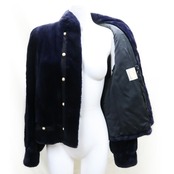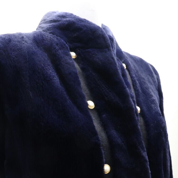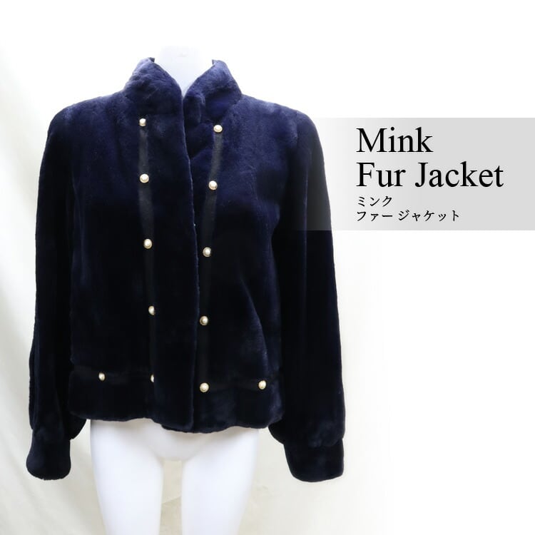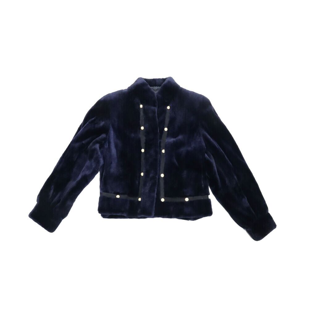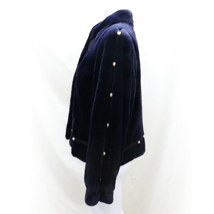 刈り毛加工により、柔らかな綿毛のみに揃えたミンクファージャケット。ネイビーカラーがその毛質をより深みのある艶やかさ、清潔な印象にしています。ジャケットに沿うようにライン状にデザインされたボタンもポイント。