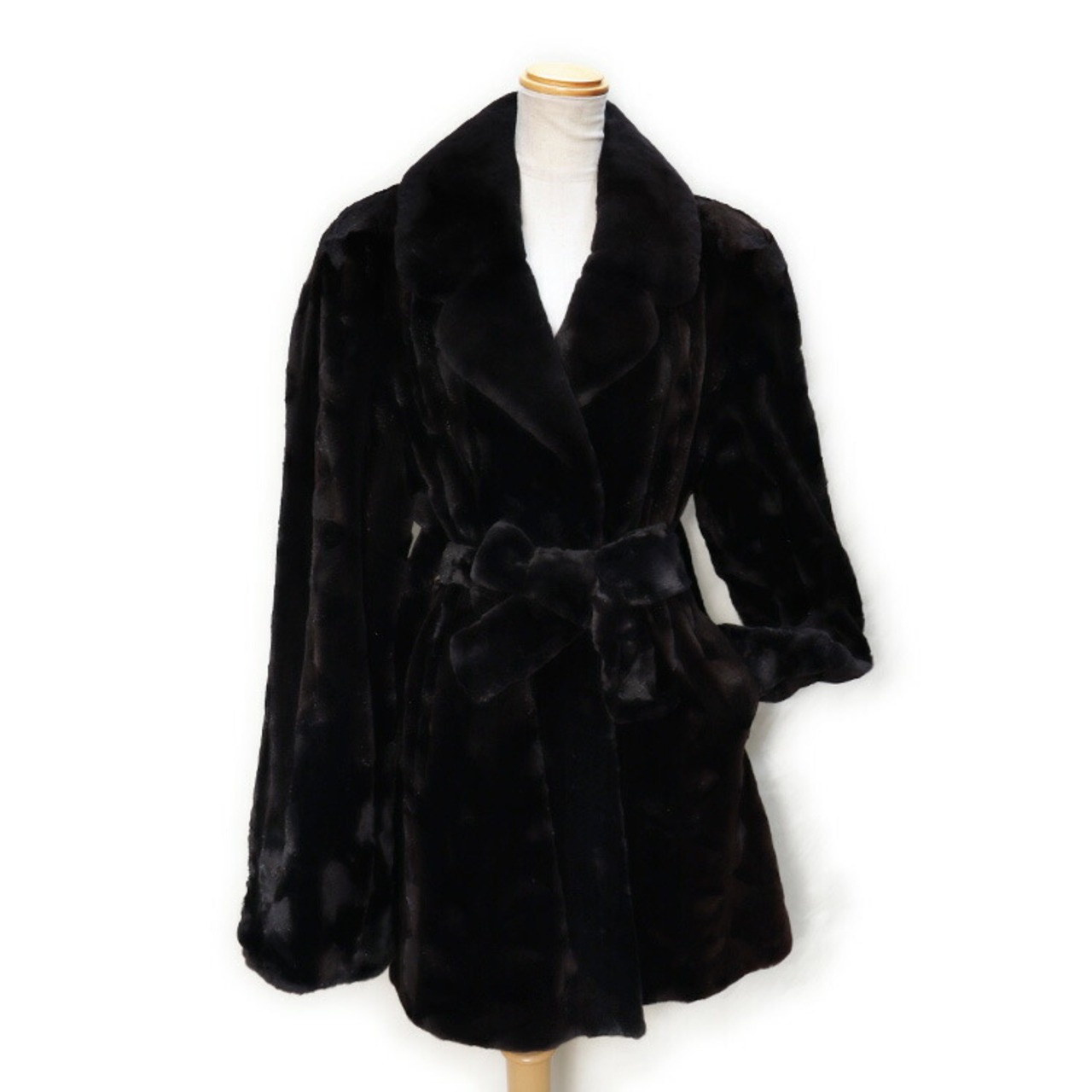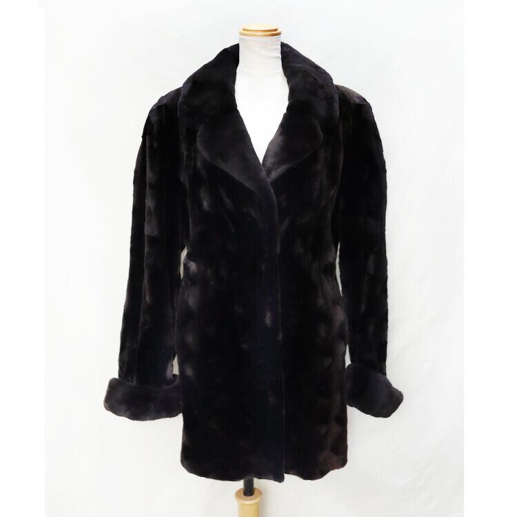 【サイズ(最大部を計測)】着丈約84cm 身幅約105cm 肩幅約44cm 袖丈約72cm 【内側ポケット】1つ 【外側ポケット】2つ 【重さ】約1295g 【留め具】ホック×3 【裏地】有り 【素材】シェアード(刈り毛)ミンク