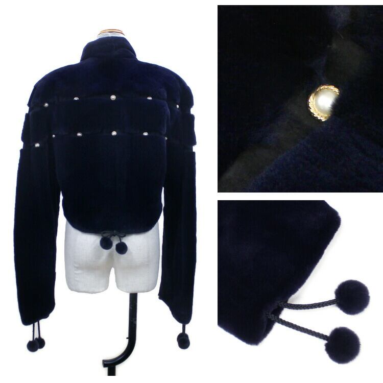 シェアード ミンク ファー ジャケット ショート ブルー ナポレオンジャケット クラシックレザー 送料無料 レディース ギフト プレゼント