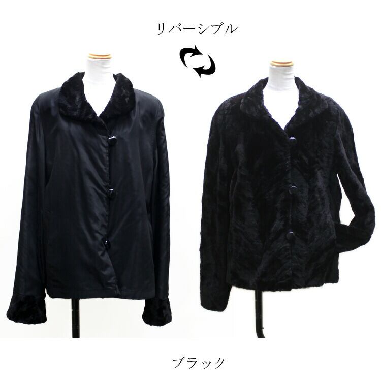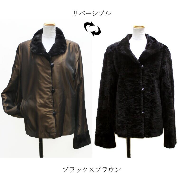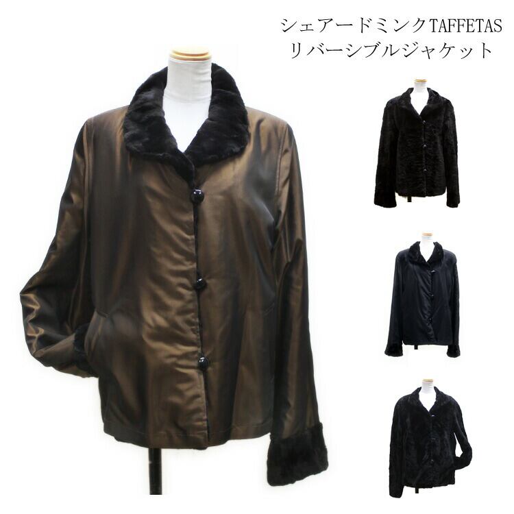 シェアード ミンク ファー タフタ リバーシブル ジャケット ブラック ブラウン 送料無料 レディース ギフト プレゼント