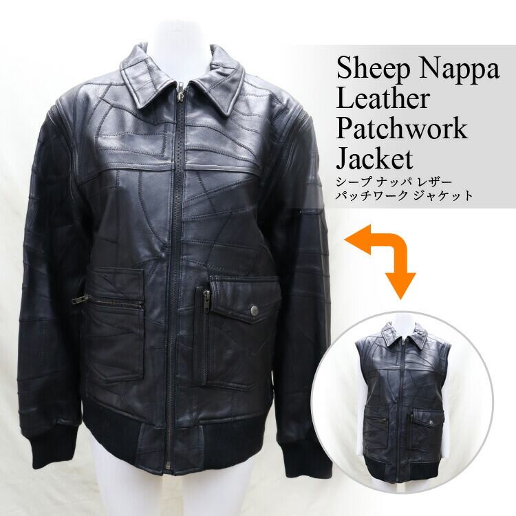 シープ ナッパ レザー パッチワーク ジャケット ベスト切り替え可 ブラック 送料無料 レディース ギフト プレゼント
