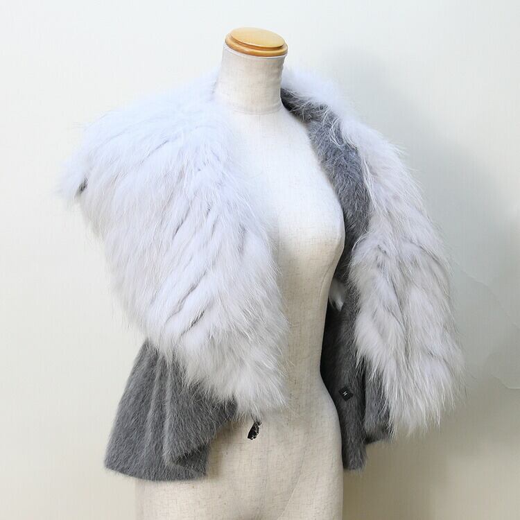 母の日 / 【サイズ】肩幅約32cm 身幅約64cm 着丈約57cm アームホール約72cm 【重さ】約465g 【素材】ラクーン(タヌキ)・ウール 【留め具】ホック×1 【内側ポケット】無し 【外側ポケット】無し 【裏地】無し