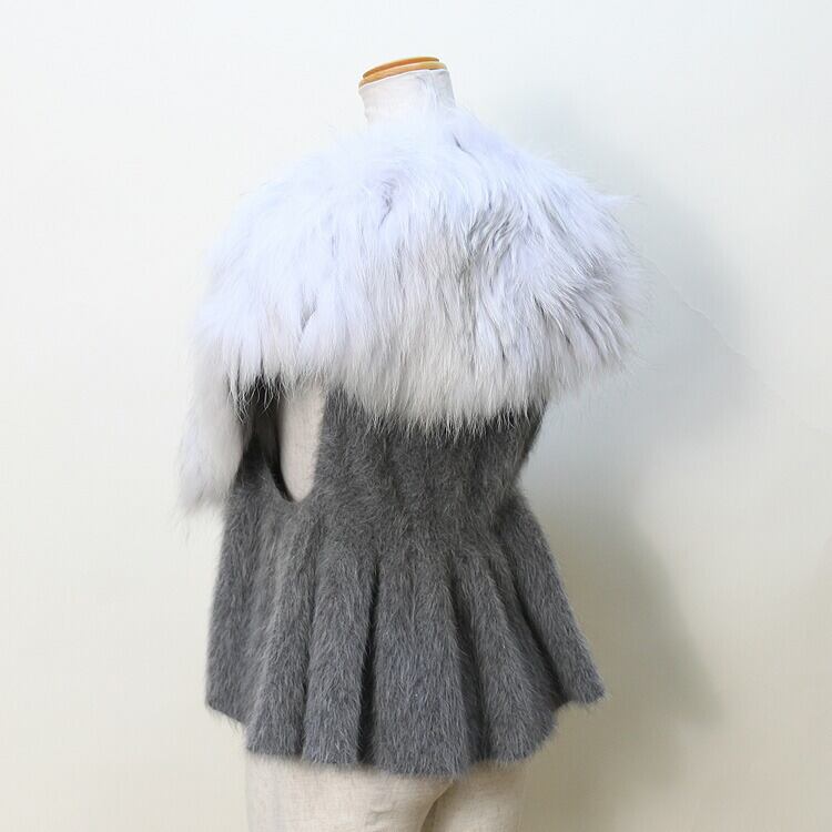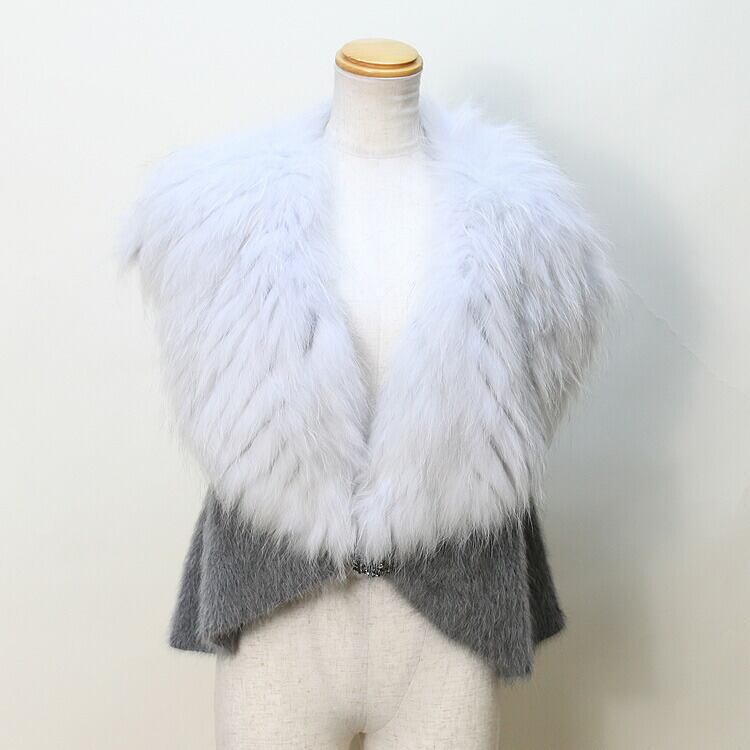 TA3376AGY1063 ラクーン ファー トリミング ウールニット ベスト ライトグレー 送料無料 レディース ギフト プレゼント