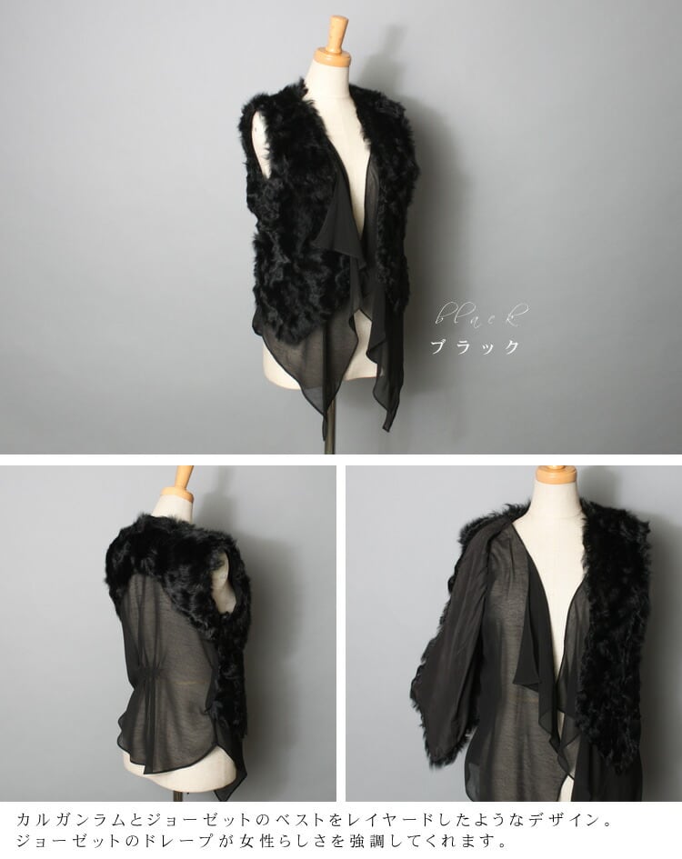 TC204BABK1063【送料無料】 カルガンラム ファー ジョーゼット レイヤードベスト レディース ギフト プレゼント