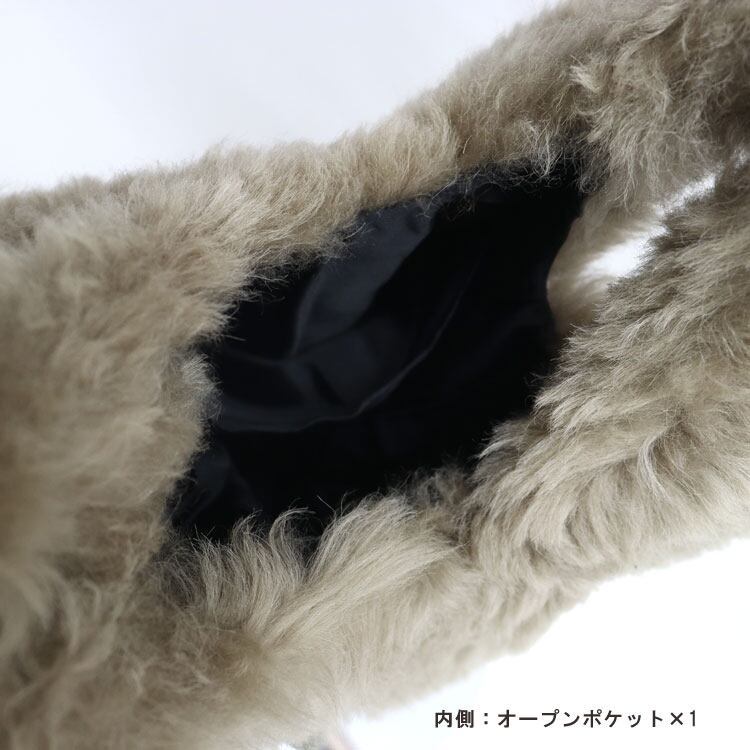 【サイズ(最大部を計測)】縦幅約38cm 横幅約25cm マチ幅約12cm 持ち手長さ約14cm 【重さ】約200g 【留め具】無し 【素材】チベットラム(刈り毛)【内側収納】オープンポケット×1 【外側収納】無し【裏地】有り