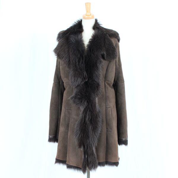 母の日 / ギフト / プレゼント / 上質なトスカーナラムを使用したダブルフェイスのコートです。襟元のワイルドなファーとスタイリッシュなシルエットが貴方の魅力を一層引き立ててくれます。リアルファーなので保温性は抜群。優しく包み込んでくれます。