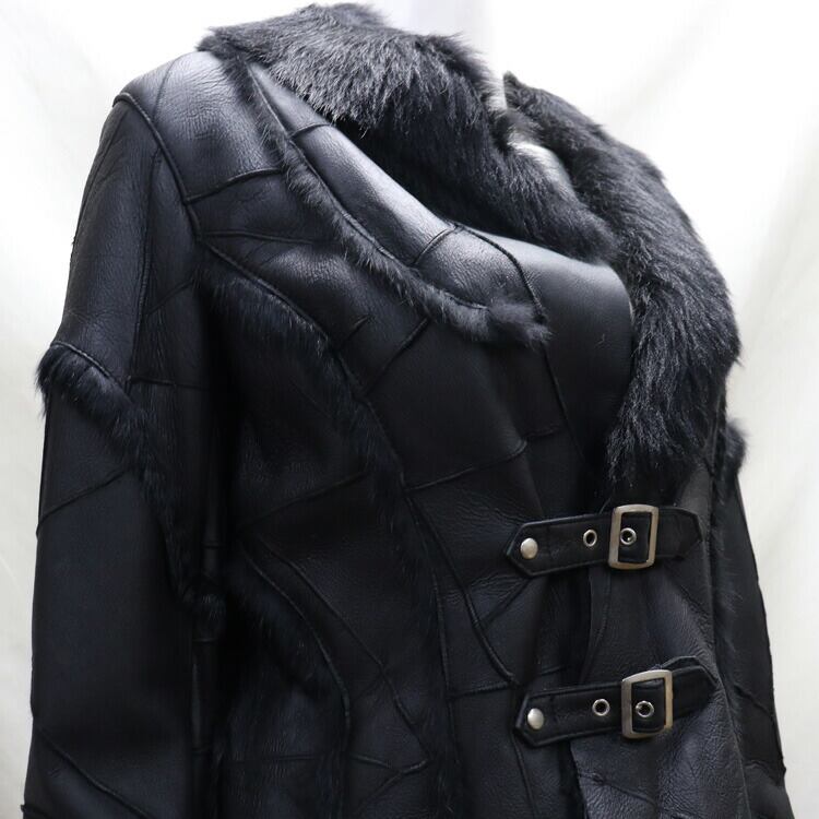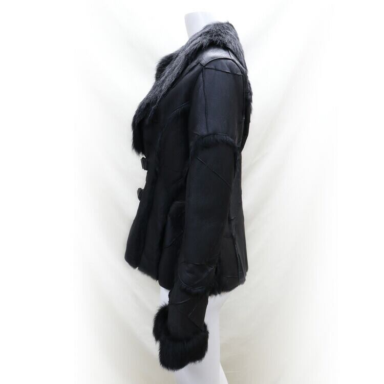 高級感を与えながらも、パッチワークデザインでカジュアルなスタイルにも合うムートンファージャケット。トスカーナ襟で毛質の違うラムの組み合わせも面白い。Wフェイス加工による内側のムートンファーがとても暖かく体を包んでくれます。二本のベルトでウエストラインを調整でき、シルエットを変えて着こなすこともできます。
