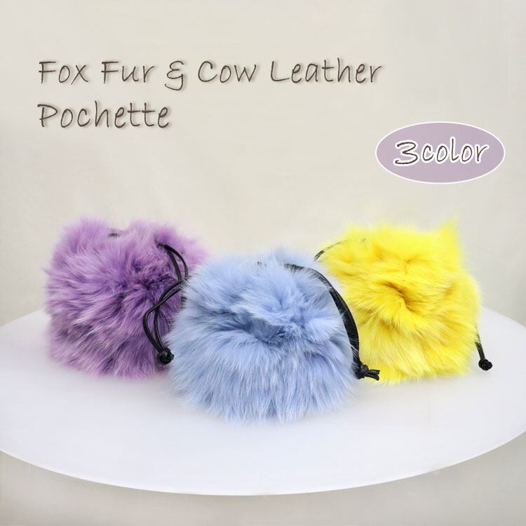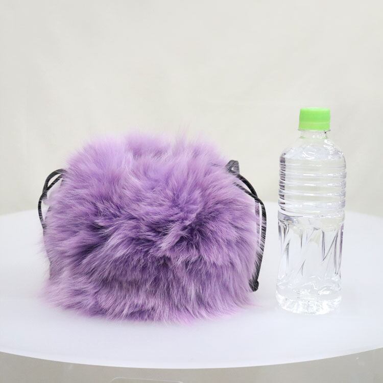 ファーバッグ フォックス リアルファー 牛革 バッグ 巾着 BAG ポシェット ミニバッグ カウレザー ショルダーバッグ レディース ギフト プレゼント WC355N