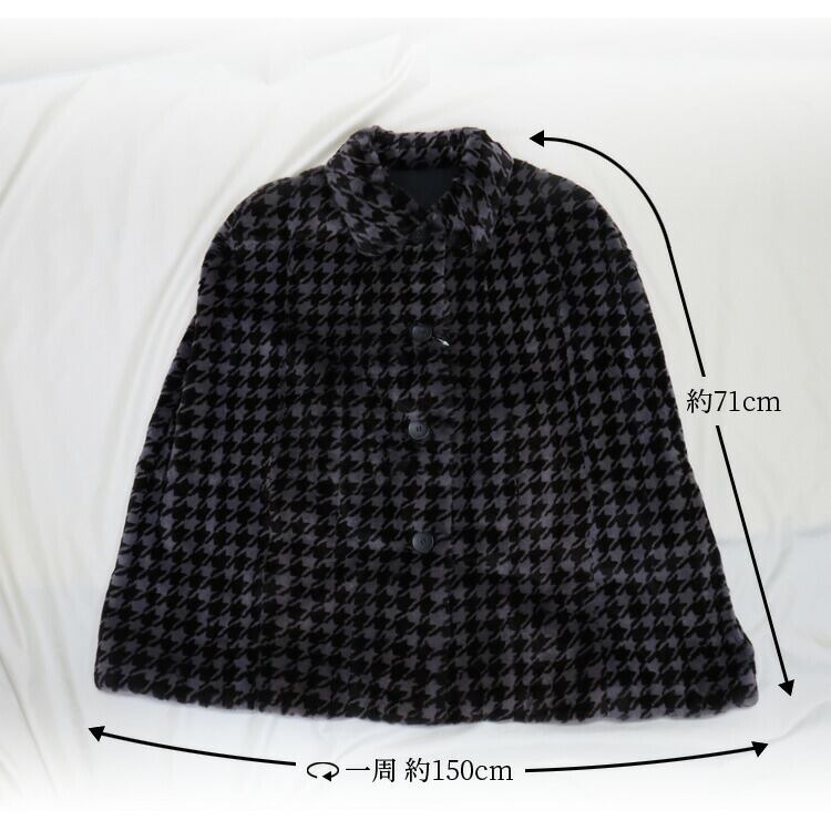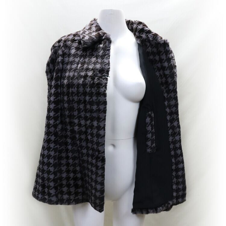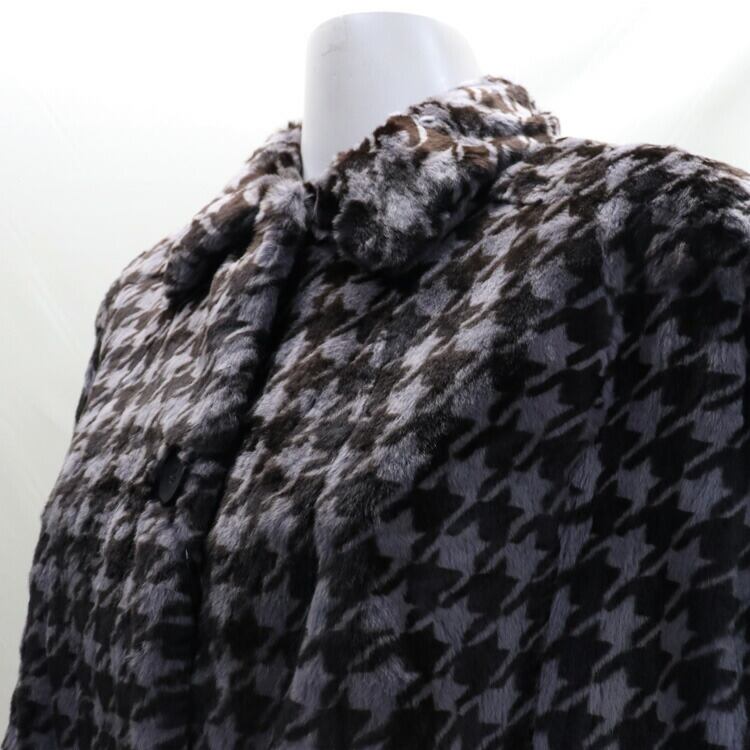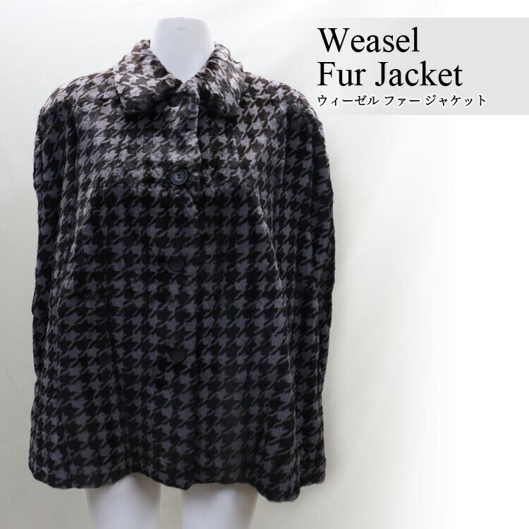 ウィーゼルを使用したファージャケットです。ジャケットと言ってもケープやポンチョのような作りになっており、グレーのチェックがアクセントになって、これ一枚でおしゃれに着こなせます。