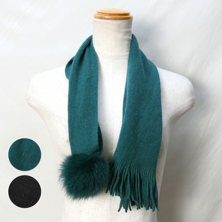 ウール ニット マフラー フォックスファー ぼんぼり 秋 冬 レディース ギフト プレゼント WO0391