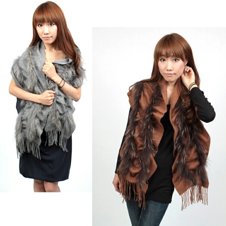 【サイズ(最大部を計測)】長さ約144cm 幅約30cm フリンジ長さ約10cm 【重さ】約170g 【留め具】無し 【裏地】無し 【素材】ラクーン(タヌキ)、ウール混生地