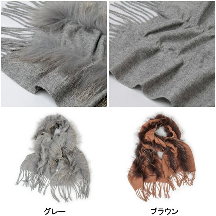 WO3181A ラクーン ファー トリミング ウール混 シャーリング マフラー レディース ギフト プレゼント