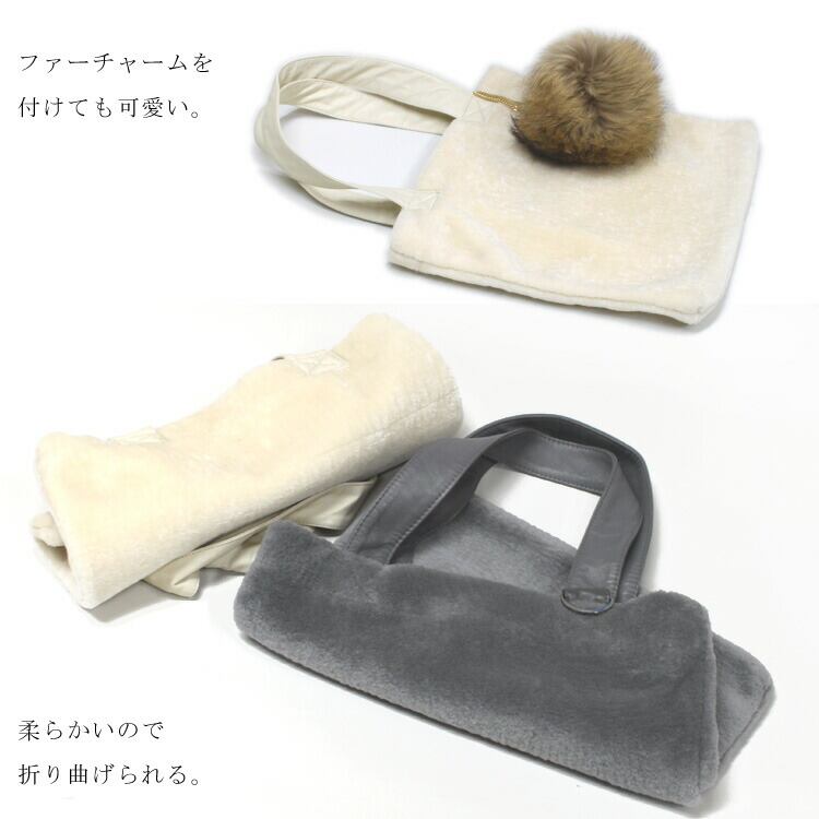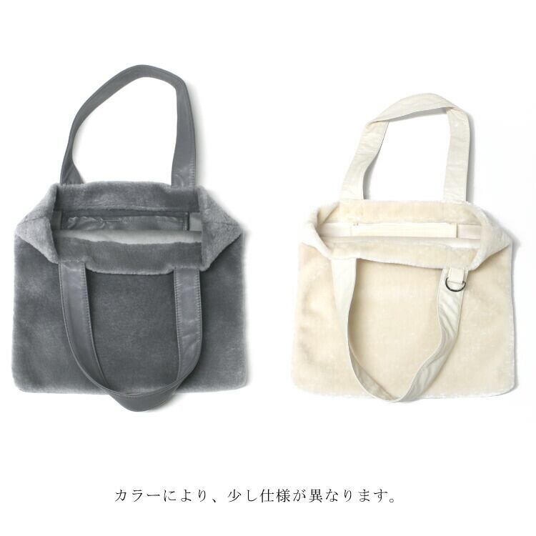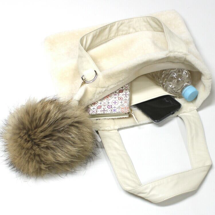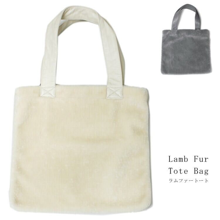 ラム ファー トートバッグ ライトグレー ベージュ リアルファー 送料無料 レディース ギフト プレゼント WO323N
