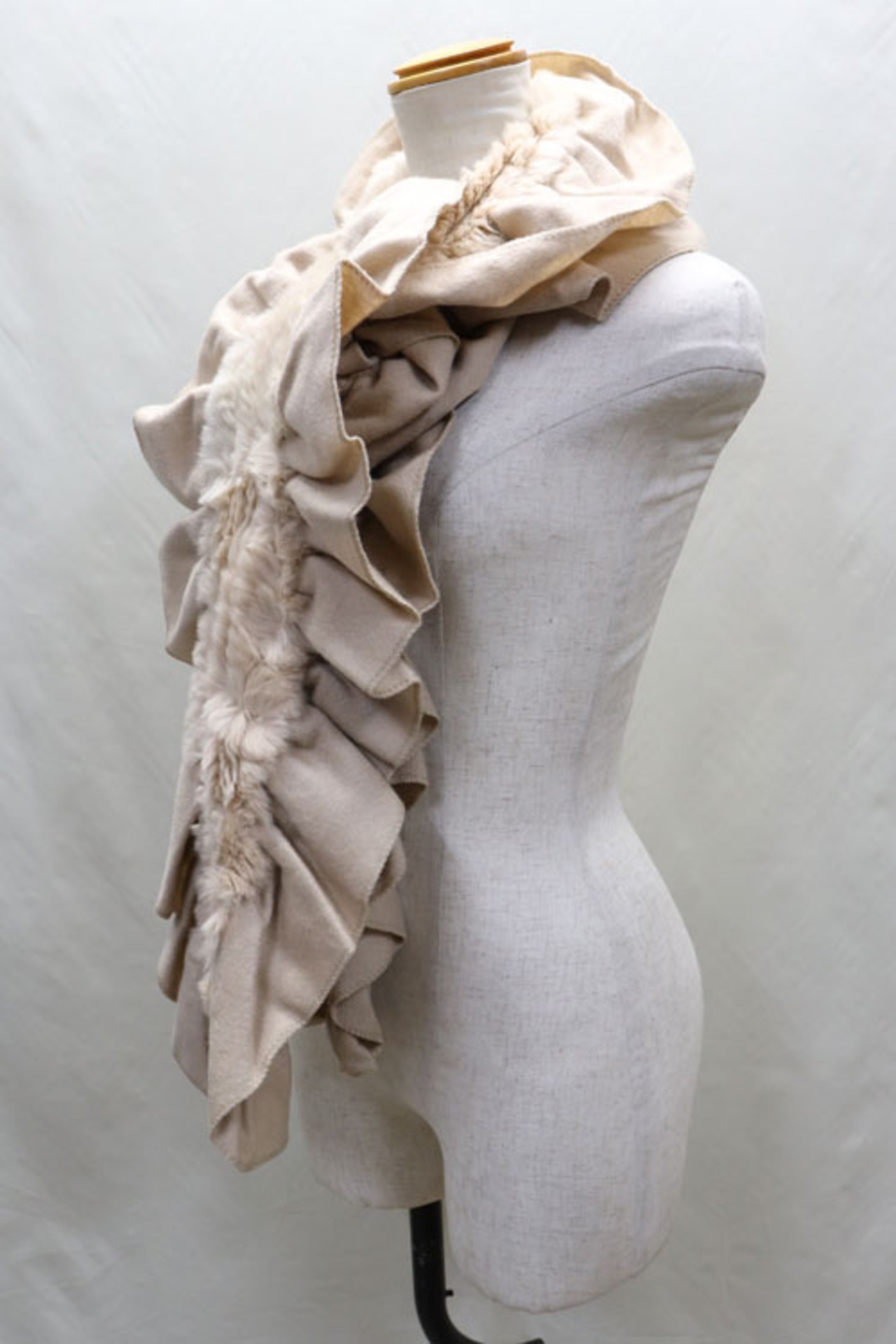 レッキスラビット ファー ウール・カシミヤ マフラー ベージュ 送料無料 レディース ギフト プレゼント WO6071
