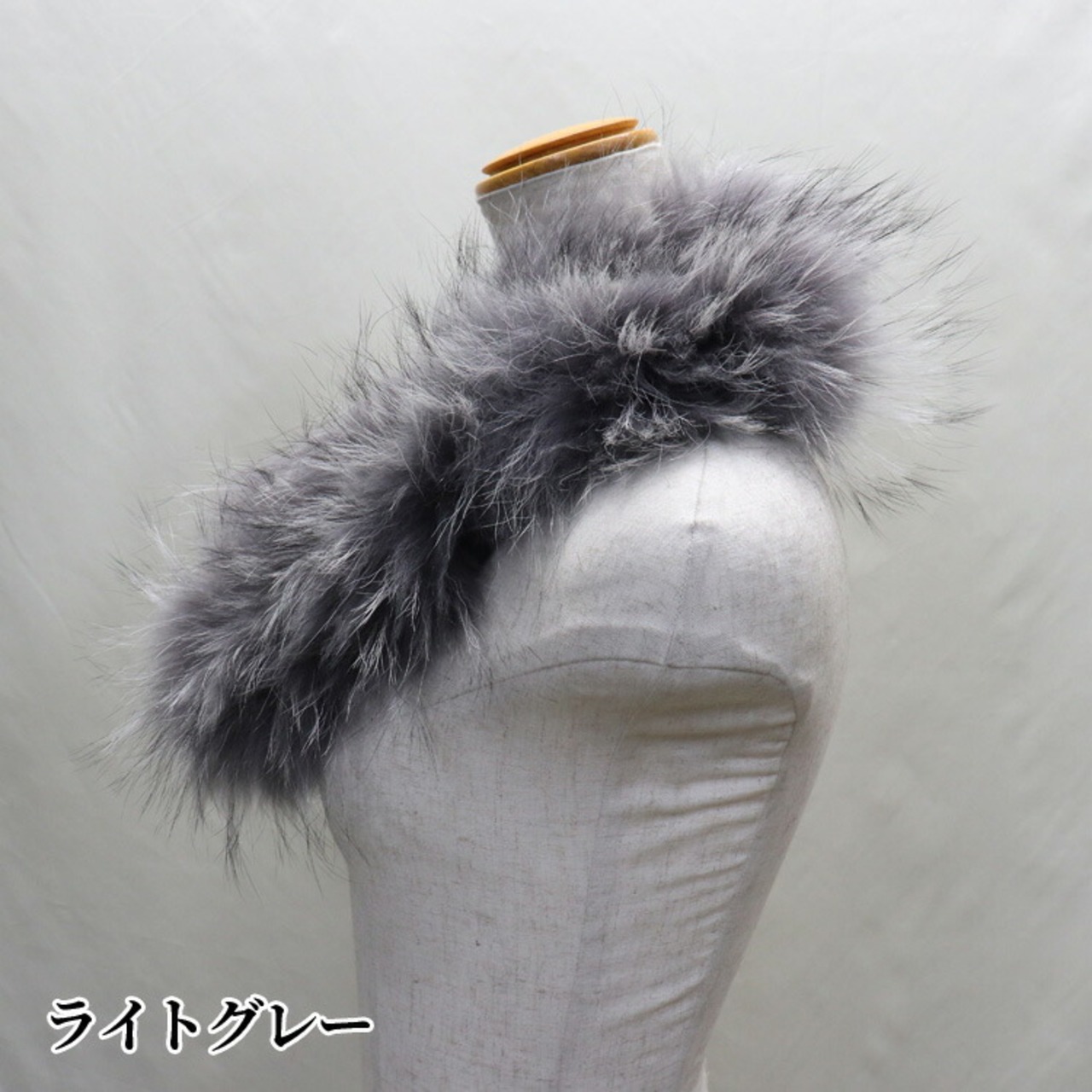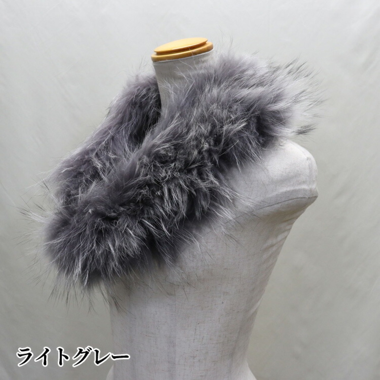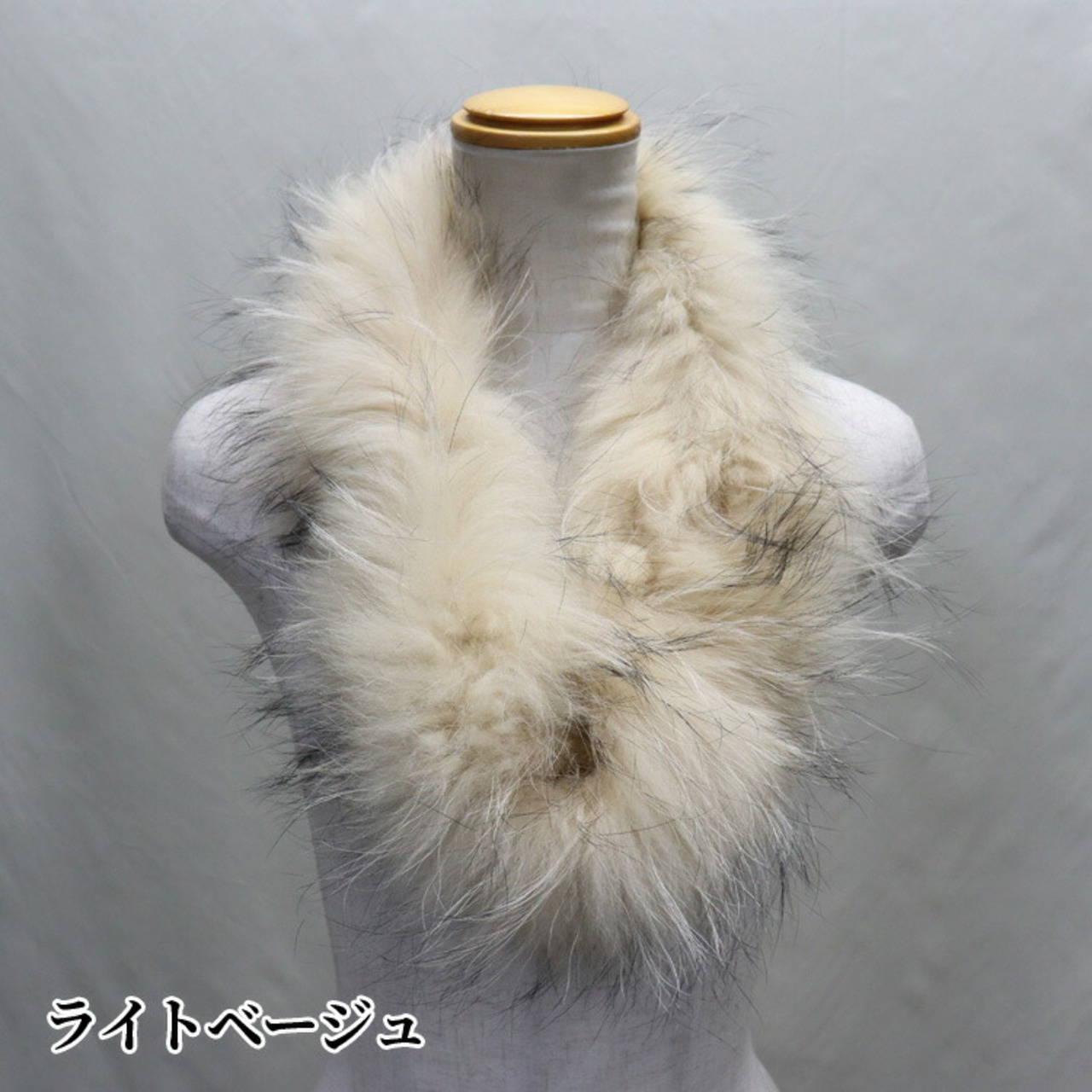 ラクーンを使用したファーネックウォーマー。筒状の為、スポッと被って簡単着用&しっかり暖かいです。