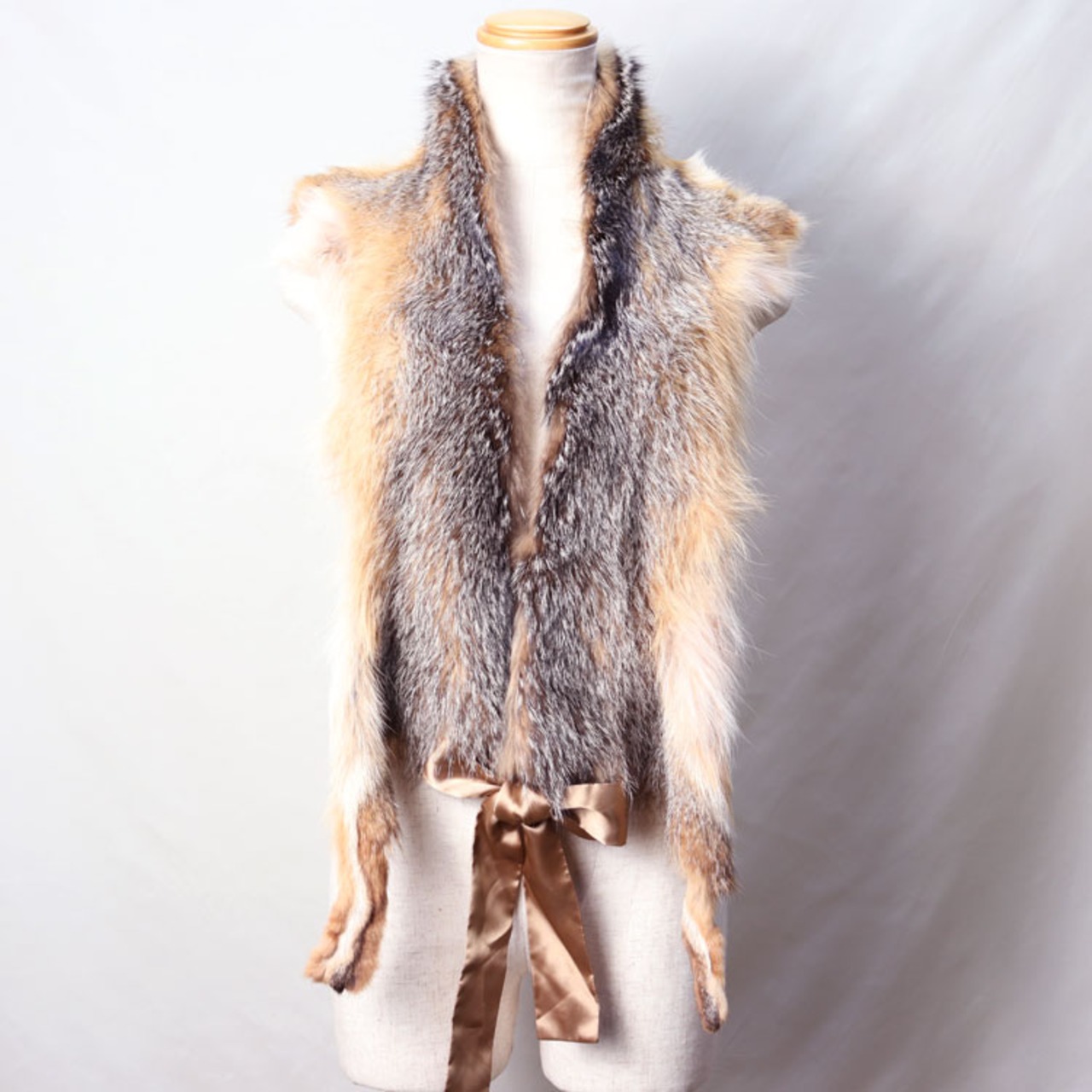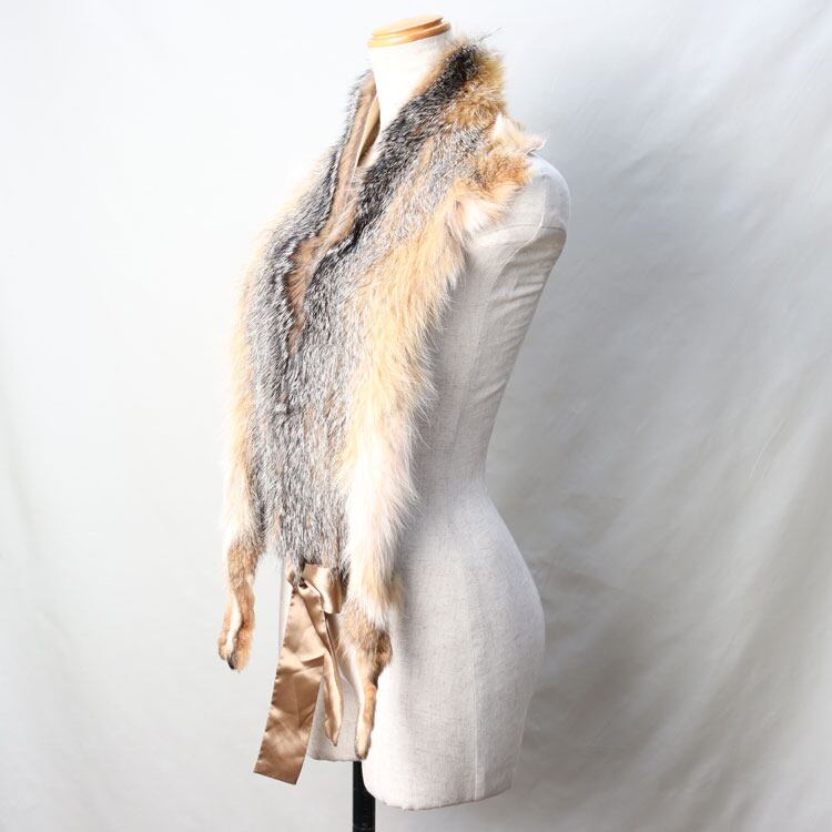 XF32C1ANA1037 グレーフォックス ファー ストール マフラー リボン付 ナチュラルカラー 切りっぱなし 送料無料 レディース ギフト プレゼント