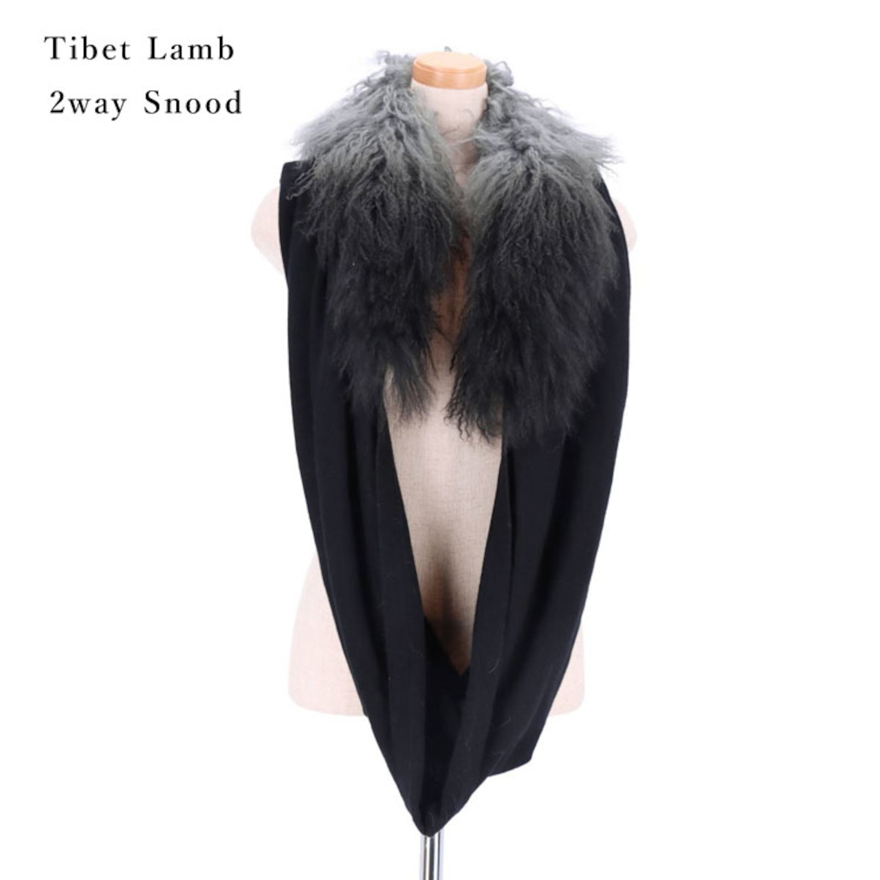 チベットラム ファー スヌード ロング 2way ファー取り外し可能 マフラー ストール トリミング ショール グレーグラデーション 送料無料 レディース ギフト プレゼント YE0031